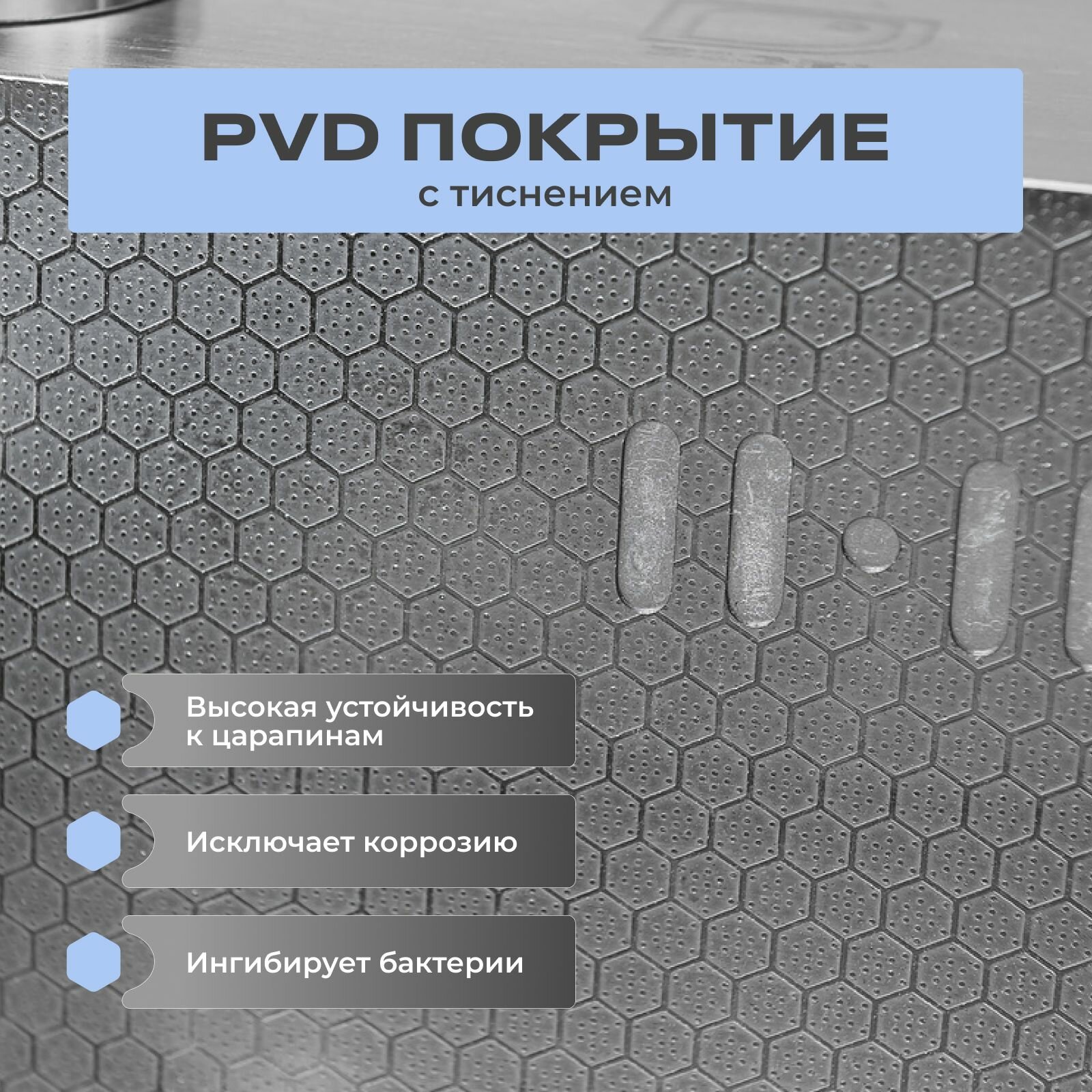 Мойка для кухни 50х50 из нержавеющей стали с pvd покрытием и тиснением, Графит