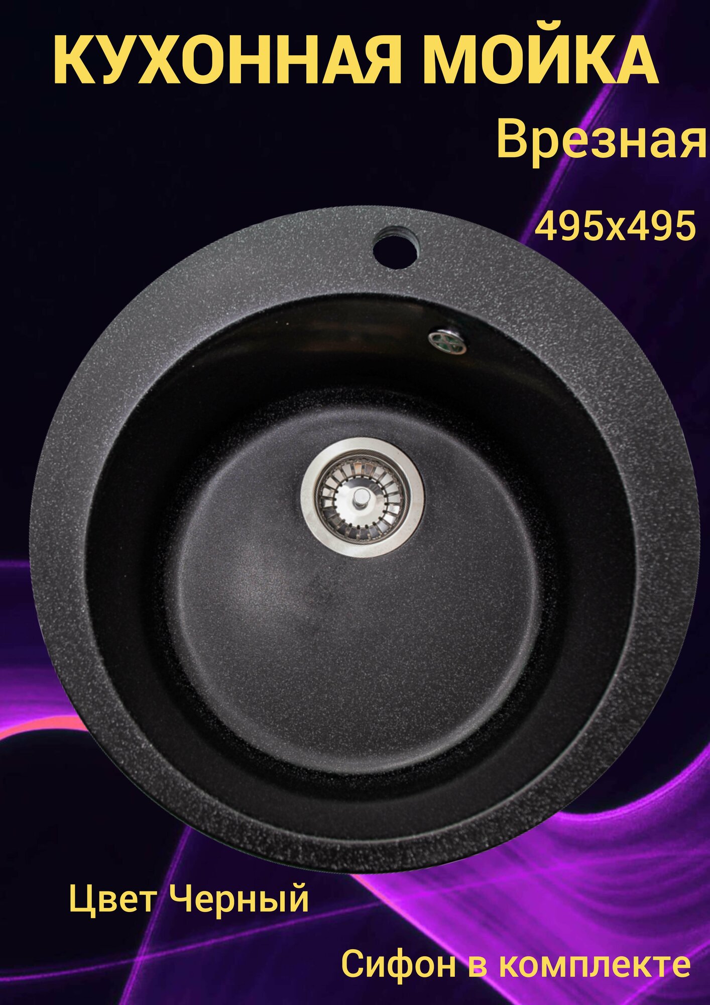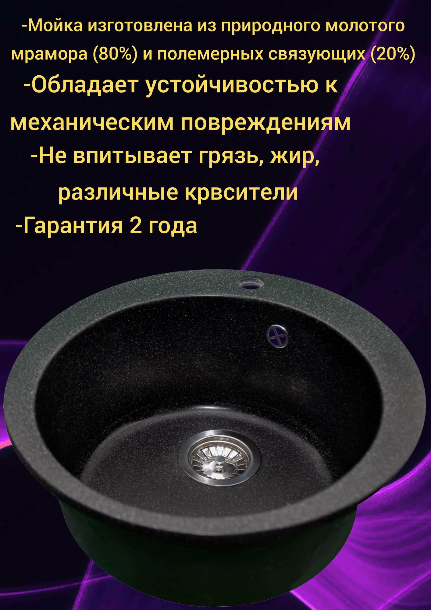 Мойка кухонная круглая GRANDluxeGARANT G-11 черная / мойка на кухню / раковина на кухню интересное: