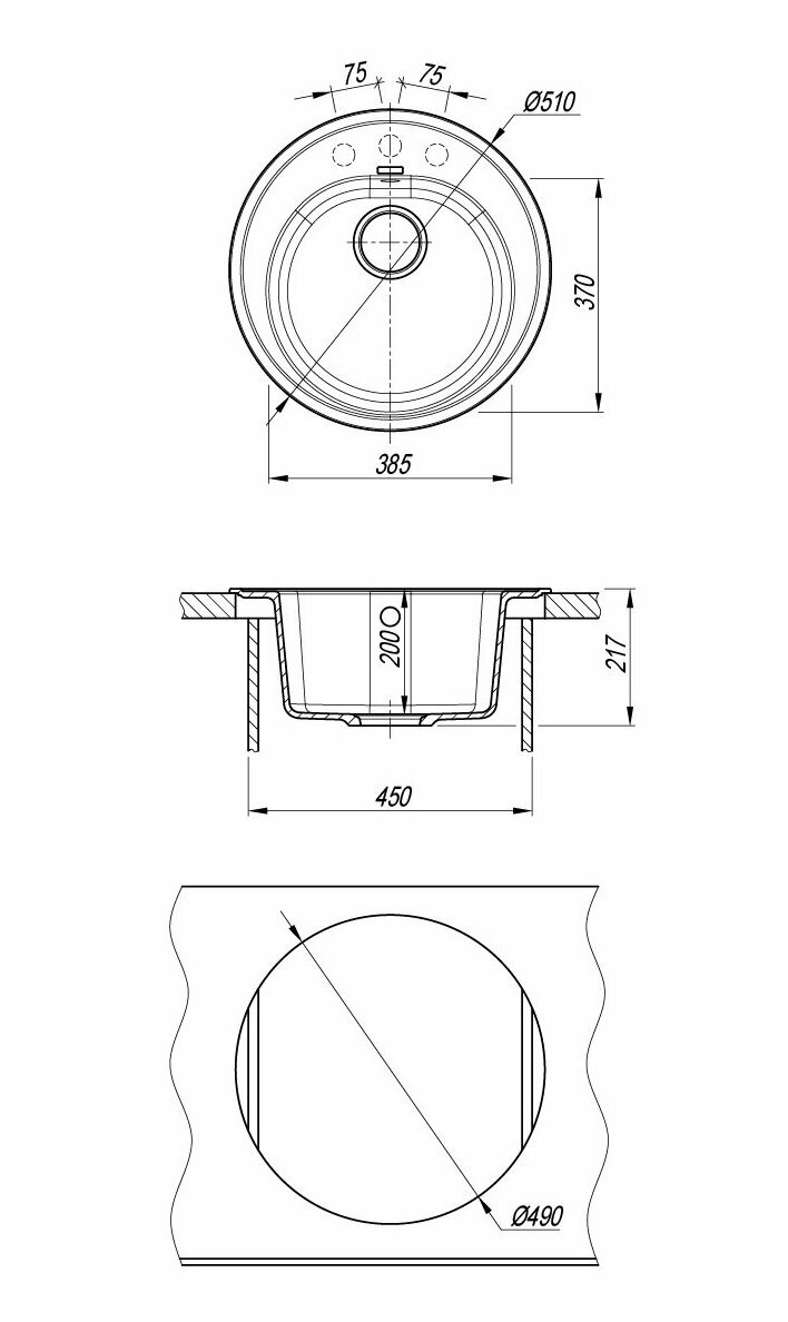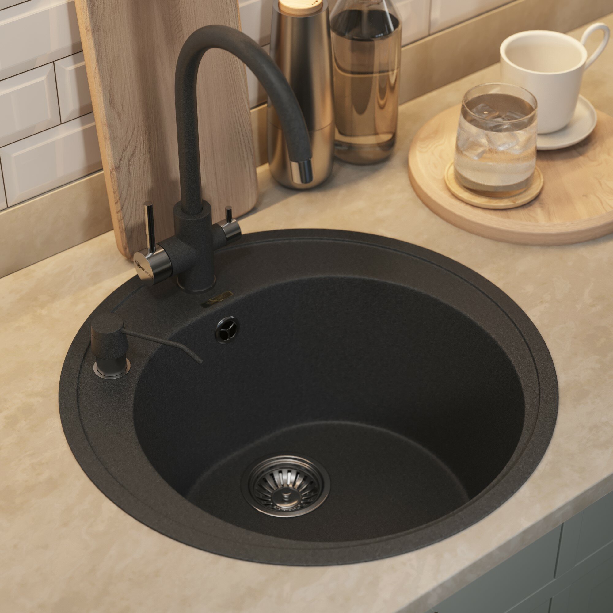 Кухонная мойка кварцевая Uperwood Quartz UPD-01-04, круглая, черная интересное: