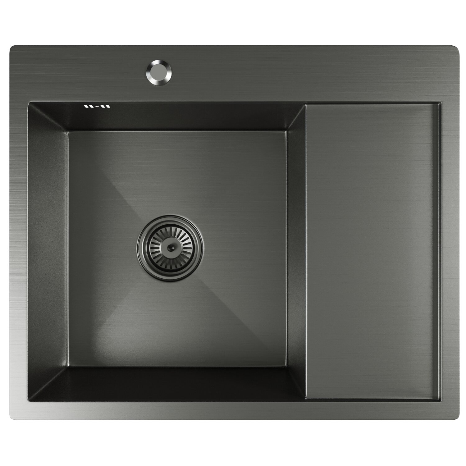 Купить Кухонная мойка 60x50 см, нержавеющая сталь, настольная, левое крыло, цвет черный графит, сифон в комплекте