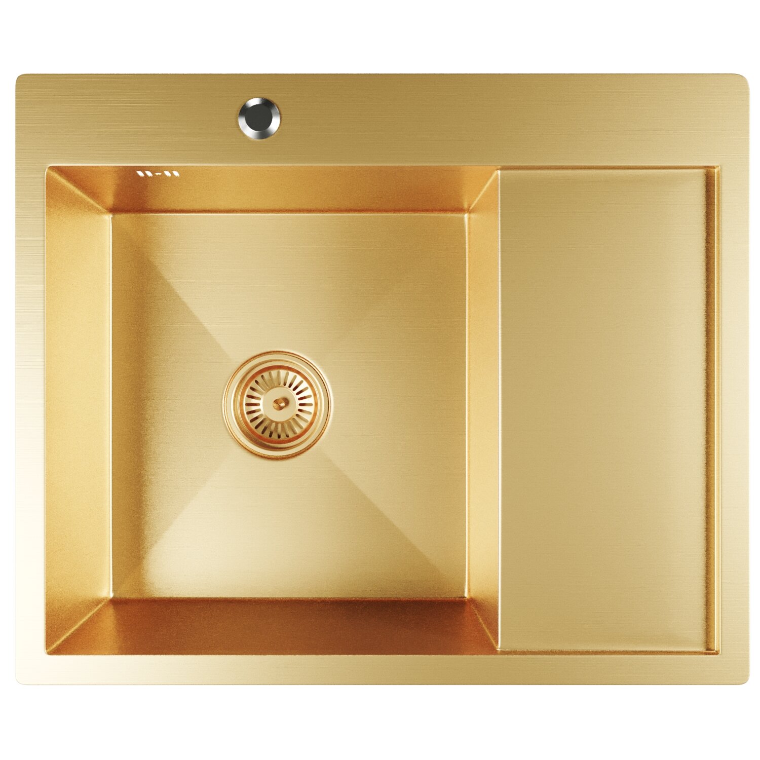 Мойка для кухни из нержавеющей стали врезная 60х50 FLEX, с сифоном, золото, крыло слева
