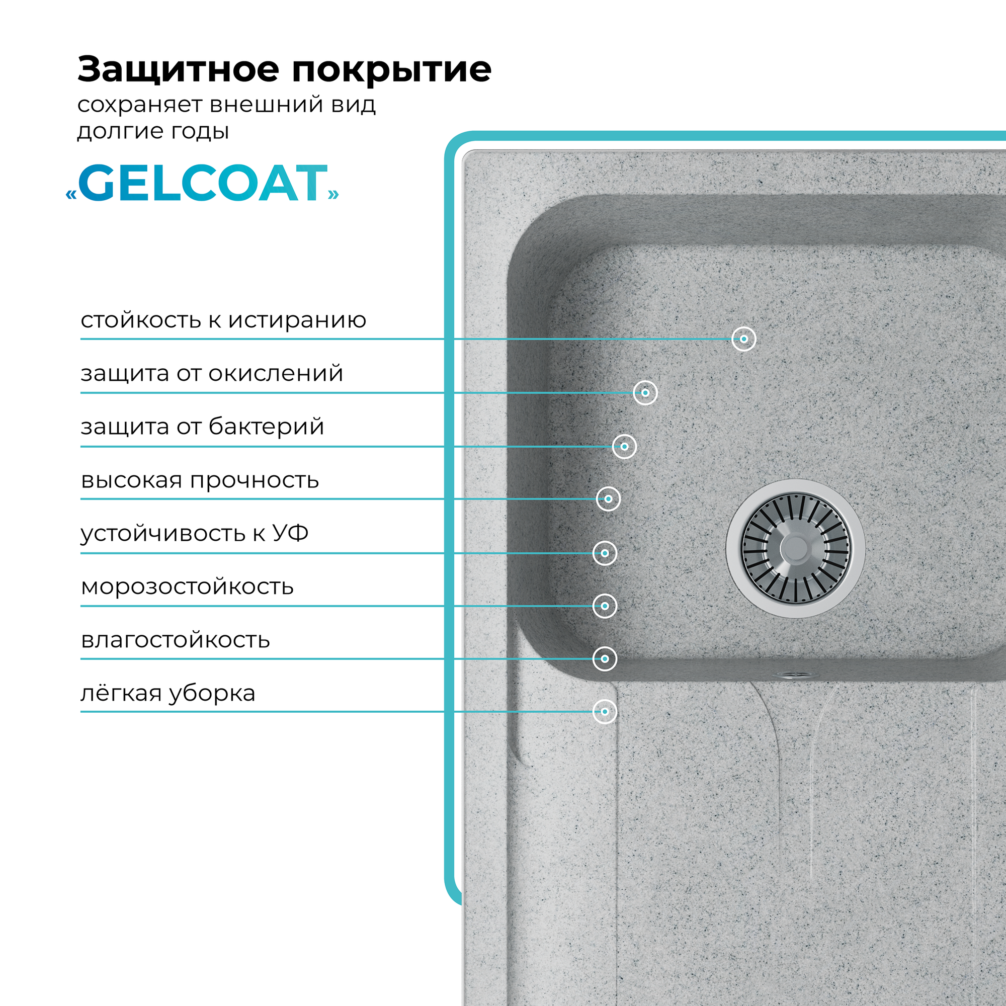 Мойка для кухни каменная POLYGRAN ALTO-780, Серая, Врезная, Квадратная, С крылом (Светло-серая) интересное: