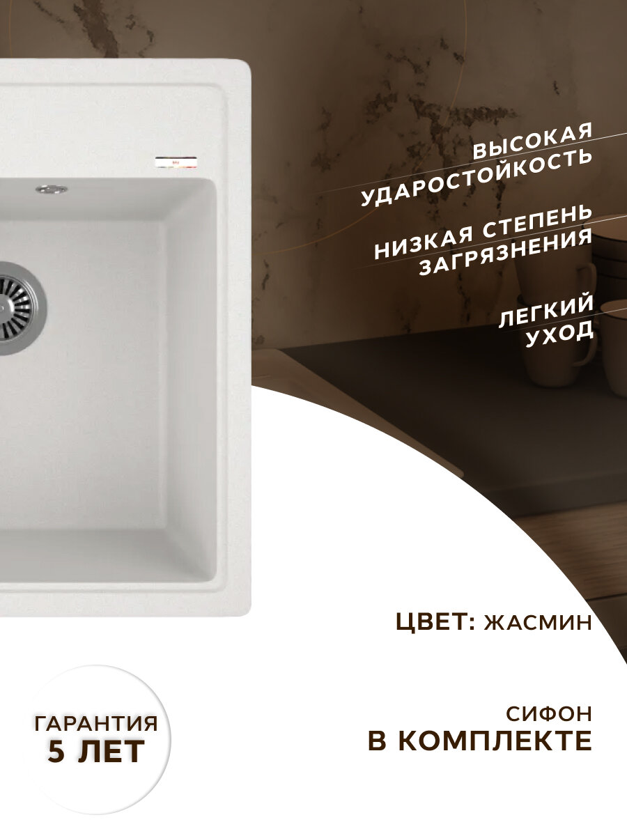 Купить Мойка для кухни врезная кварцевая в комплекте с сифоном BAU Stil Jasmine 46х51, жасмин