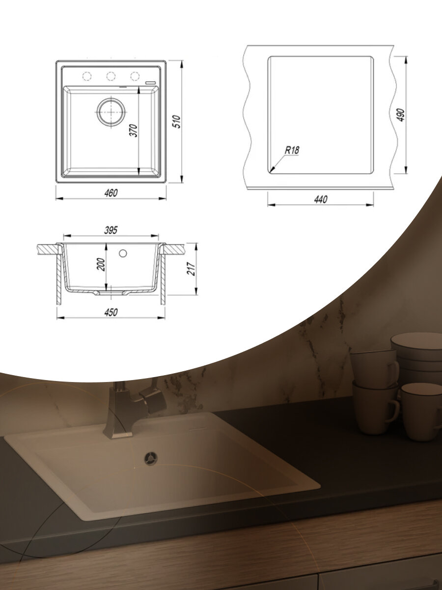 СохранитьМойка для кухни врезная кварцевая в комплекте с сифоном BAU Stil Jasmine 46х51, жасмин интересное: