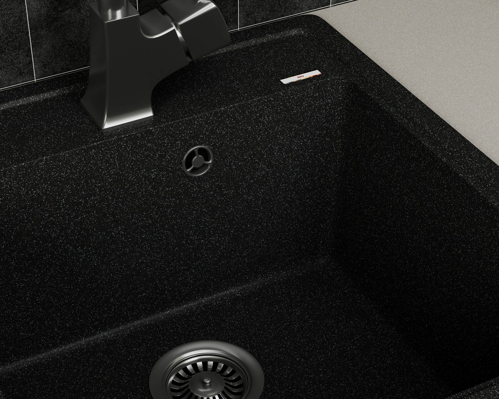 Мойка для кухни врезная кварцевая в комплекте с сифоном BAU Stil Black 65х51, черный