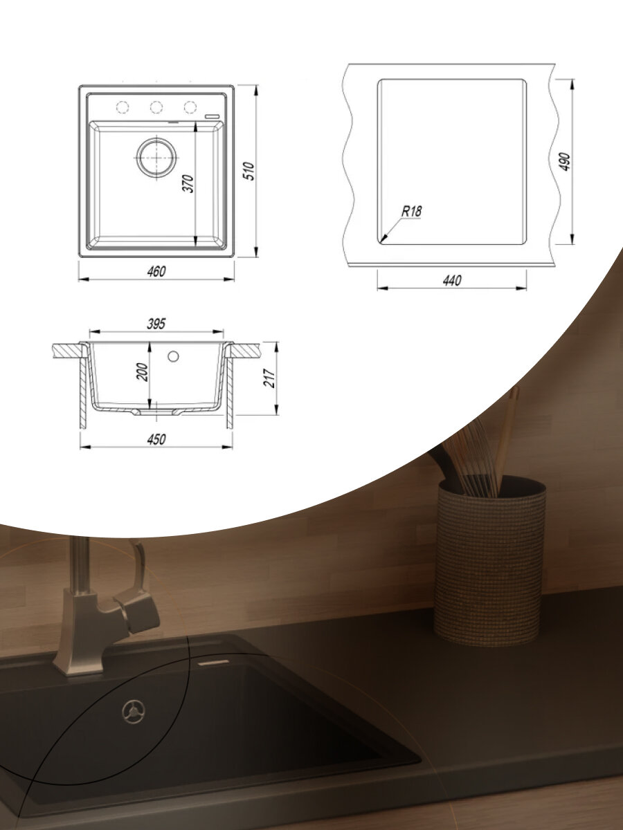 СохранитьМойка для кухни врезная кварцевая в комплекте с сифоном BAU Stil Anthracite 46х51, антрацит интересное:
