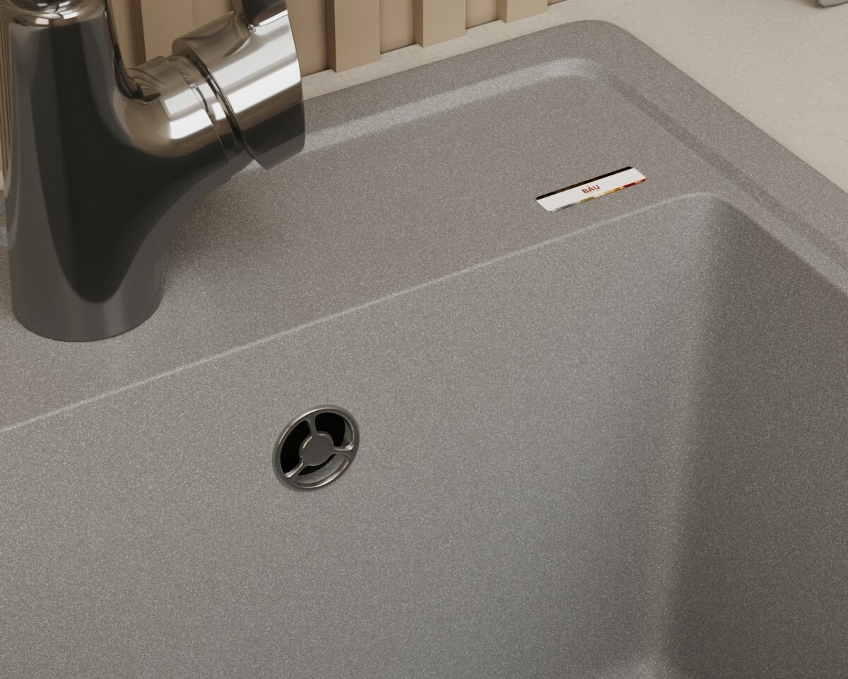 Мойка для кухни врезная кварцевая в комплекте с сифоном BAU Stil Gray silk 65х51, серый шёлк