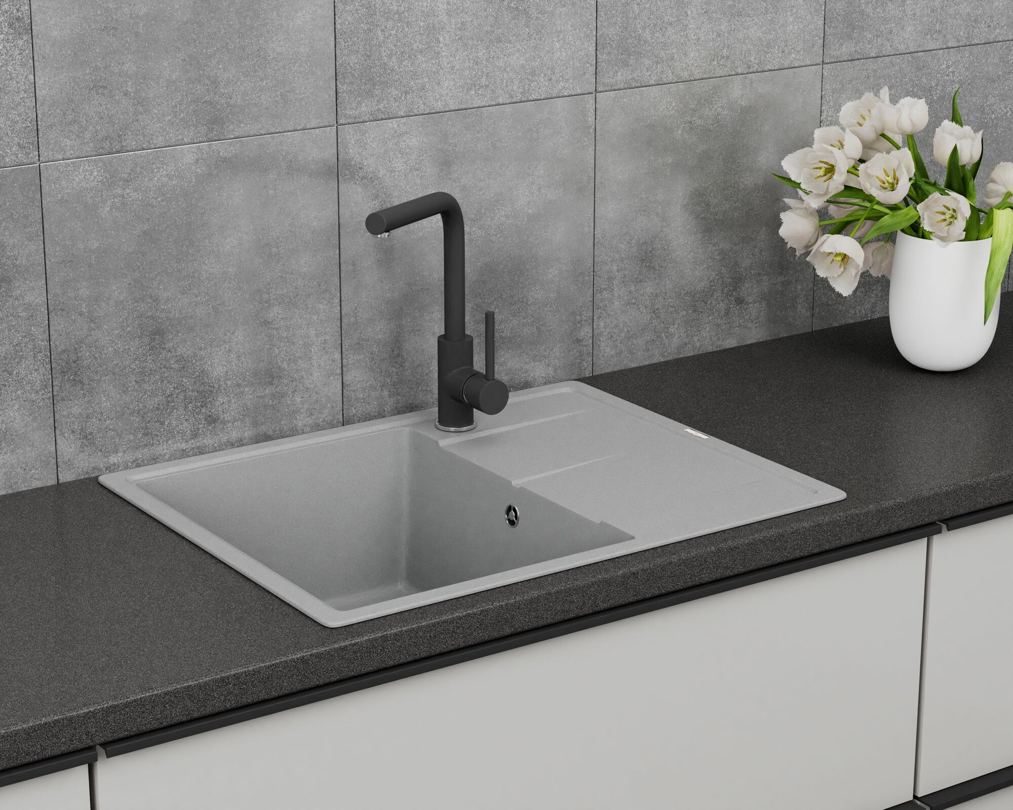 Купить Мойка для кухни врезная кварцевая в комплекте с сифоном BAU Stil Gray silk 65х51, серый шёлк