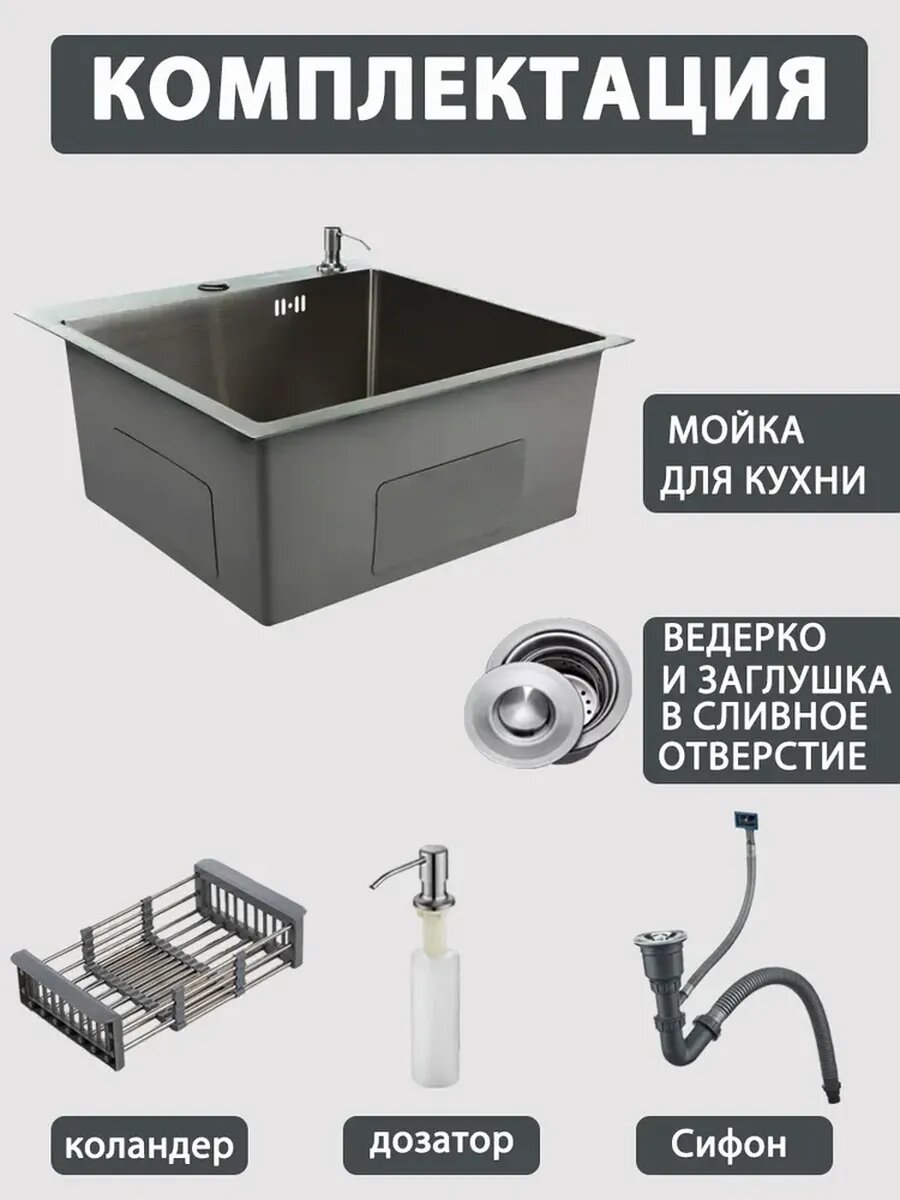 Мойка для кухни из нержавеющей стали 60*45см . Кухонная раковина. В комплекте Водосточная труба