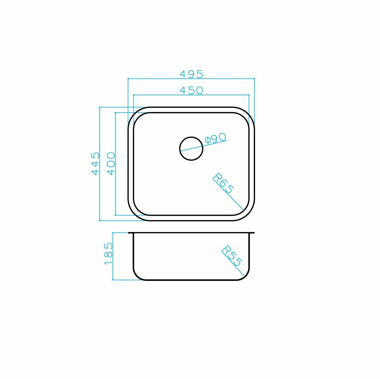 Раковина для кухни врезная нержавеющая сталь Grandex Aqua SELECT 49, 49.5х44.5х18.5/ Мойка кухонная накладная нержавейка, сифон в комплекте, Турция