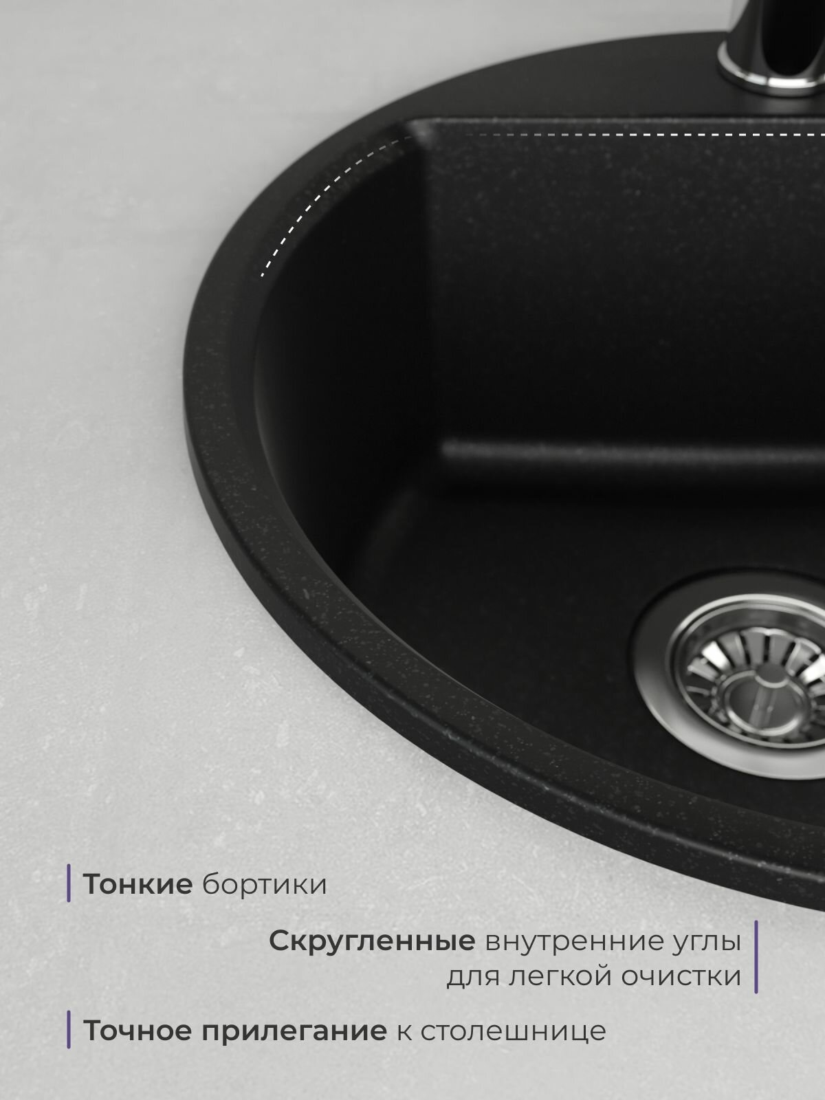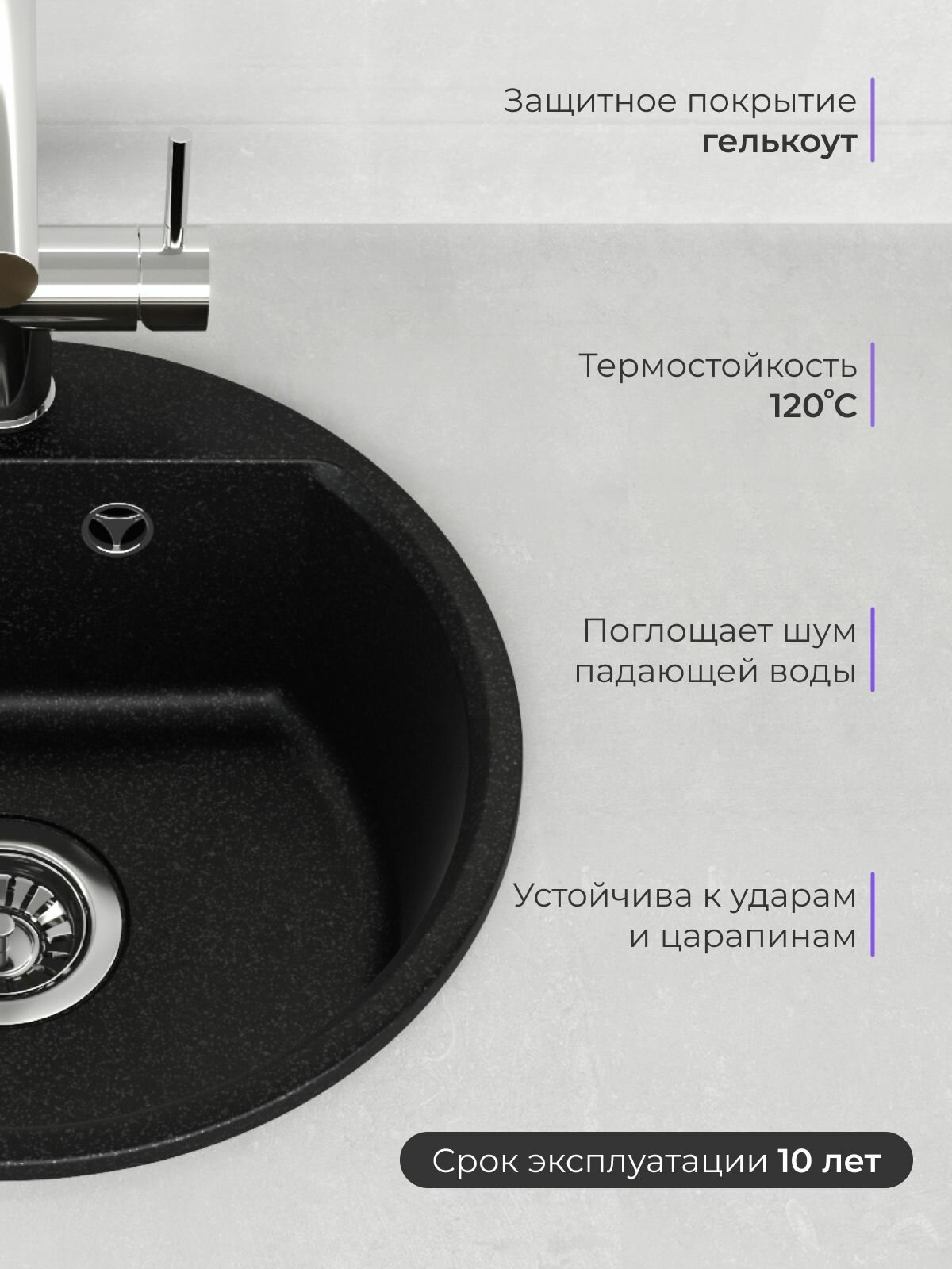 Мойка NOVA 44 , круглая, врезная, кварцевая, чёрная, матовая интересное: