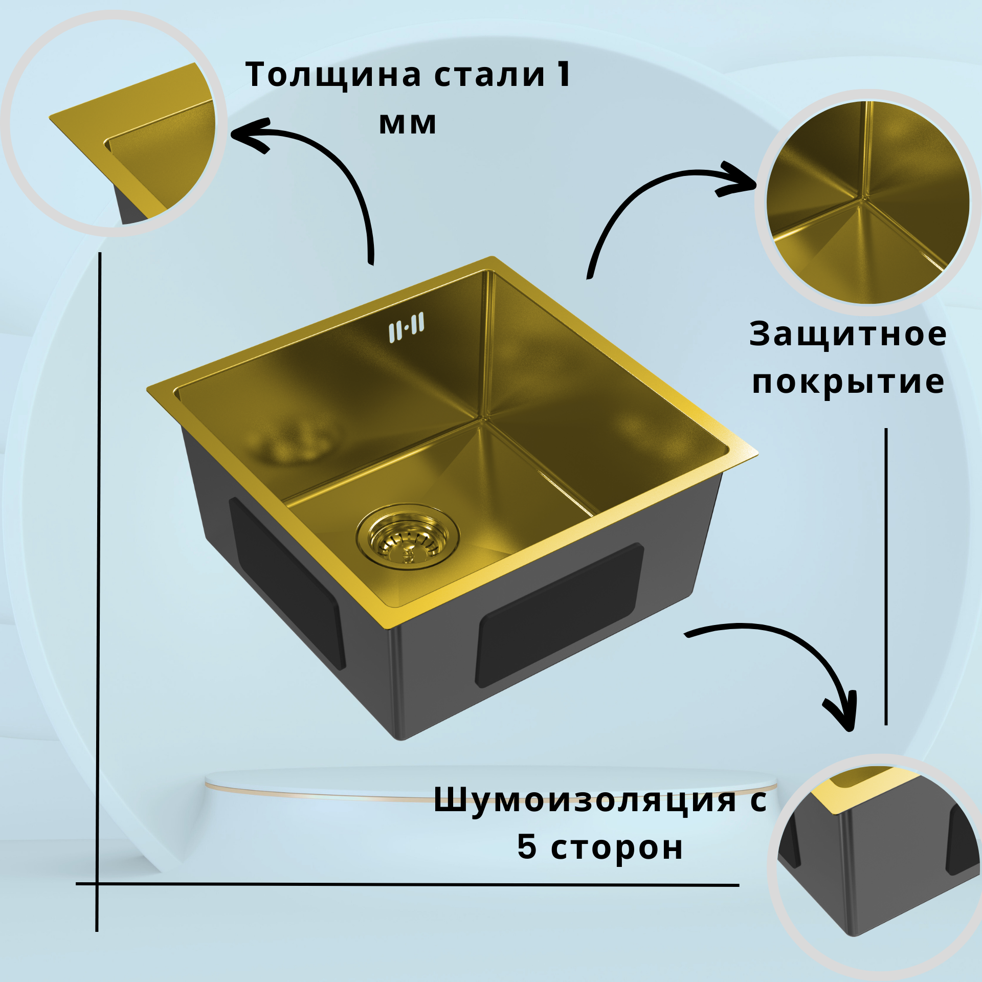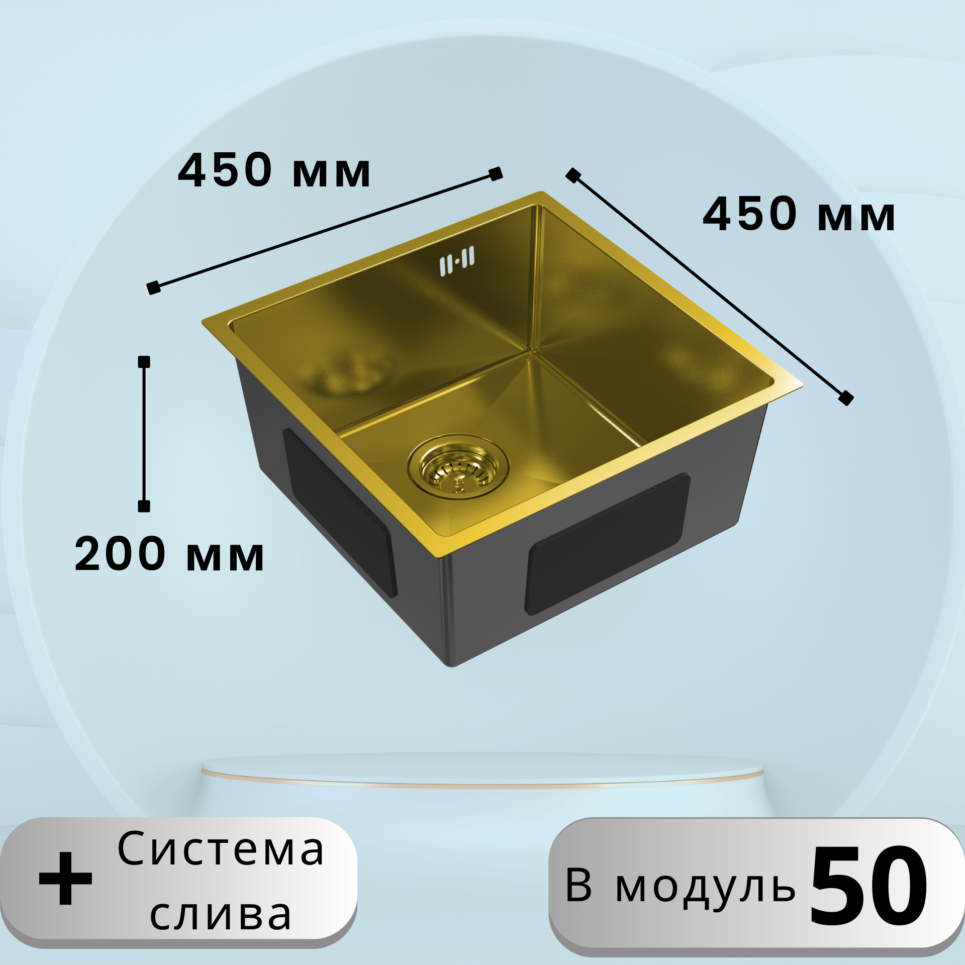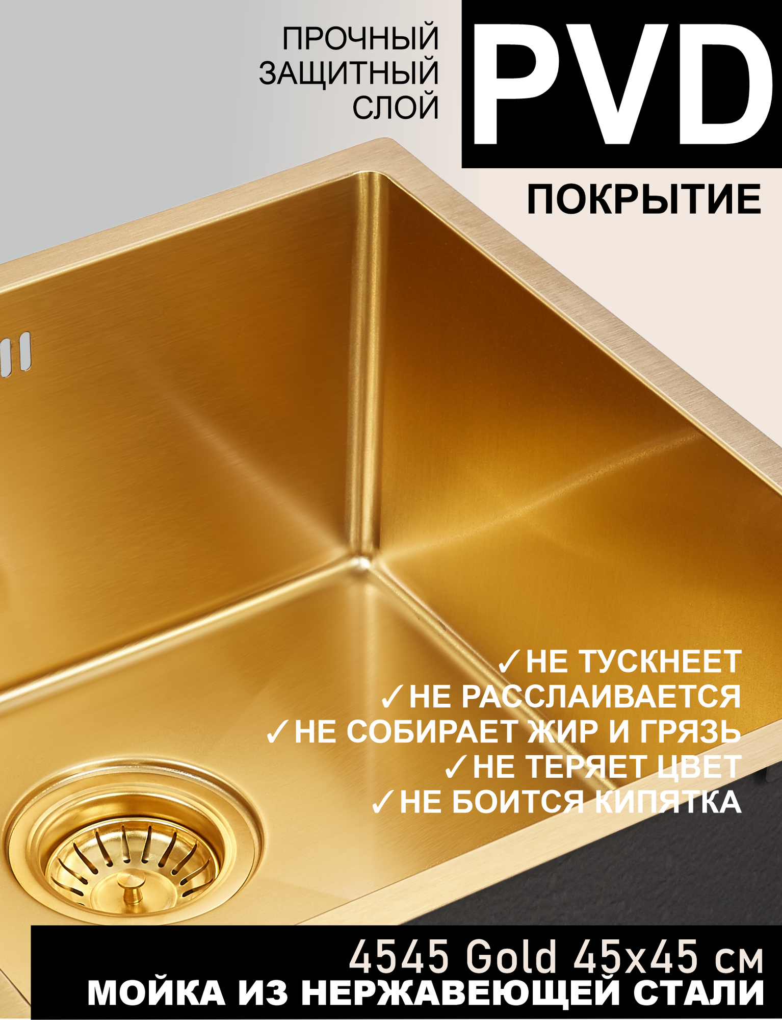 Мойка кухонная 45х45 см золото, нержавеющая сталь, квадратная, PVD покрытие интересное: