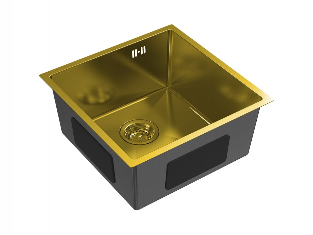 Купить Мойка кухонная 45х45 см золото, нержавеющая сталь, квадратная, PVD покрытие