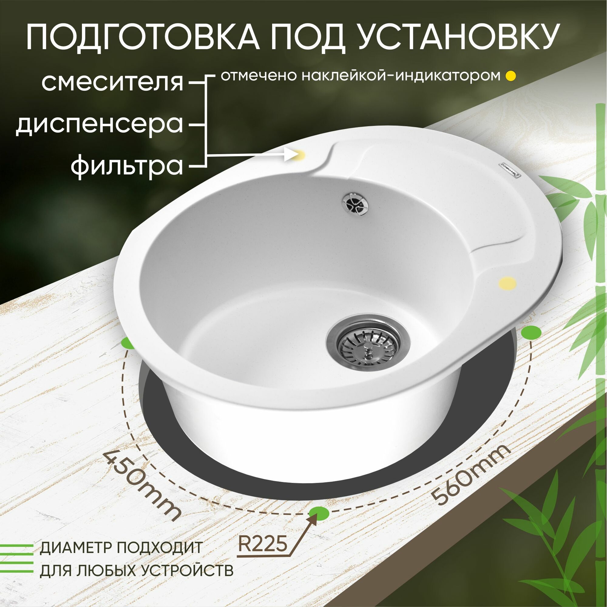 Кухонная мойка Bamboo Palma 580, белый, искусственный камень, круглая форма интересное: