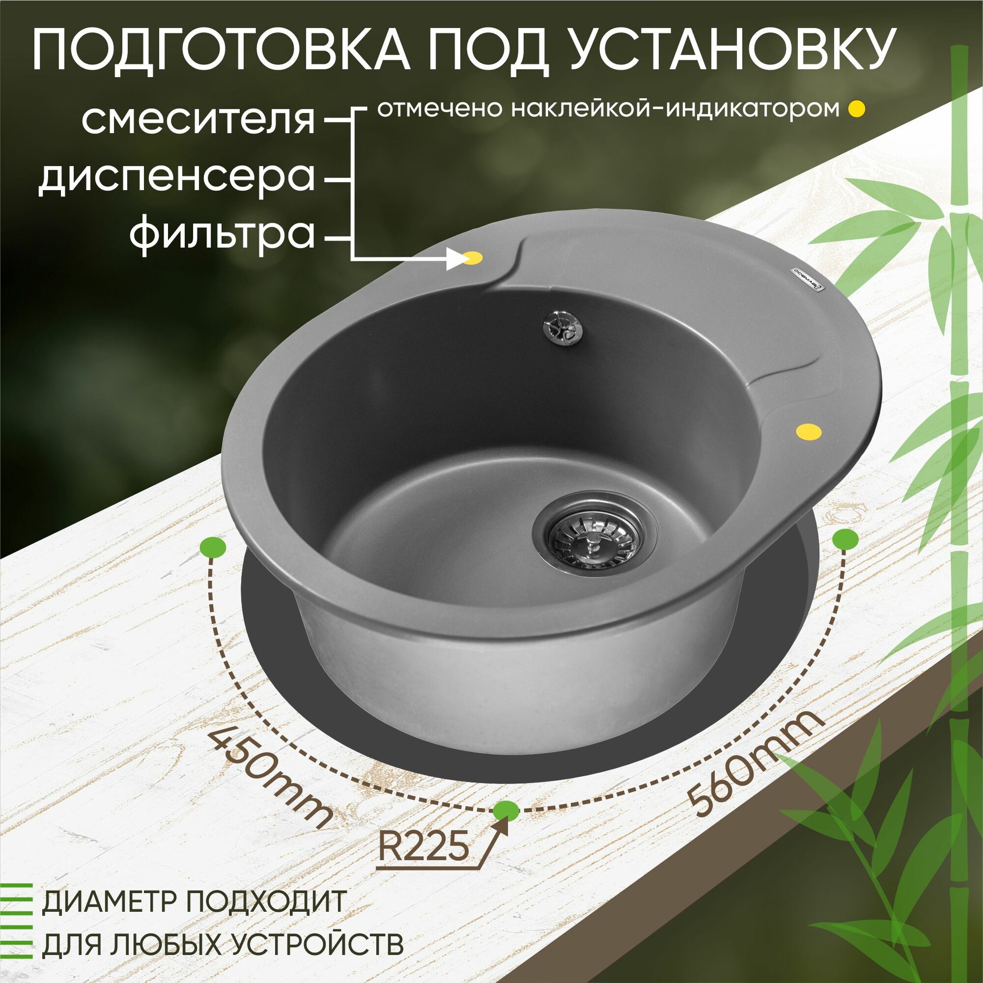 Кухонная мойка Bamboo Palma 580, серый, искусственный камень, круглая форма