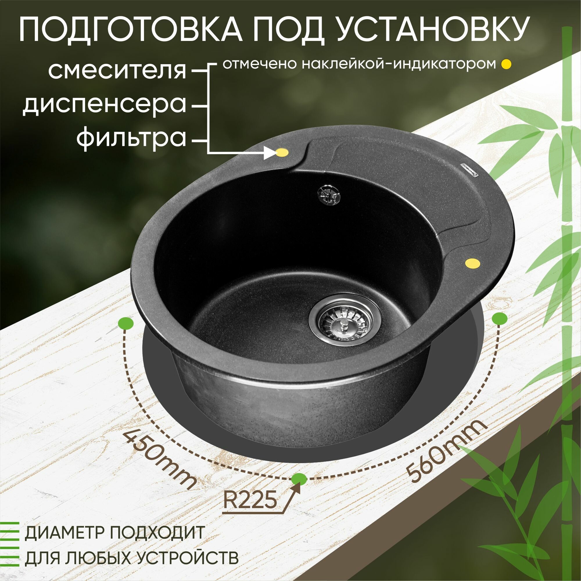 Кухонная мойка Bamboo Palma 580, графит, искусственный камень, круглая форма интересное: