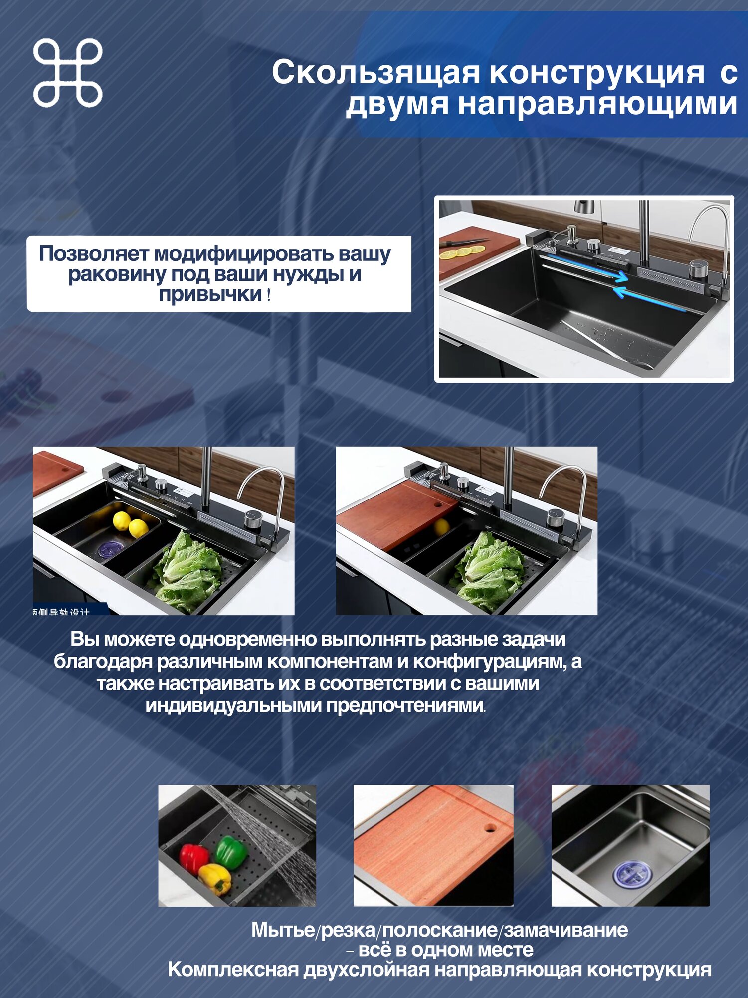 Мойка для кухни многофункциональная + смеситель водопад интересное:
