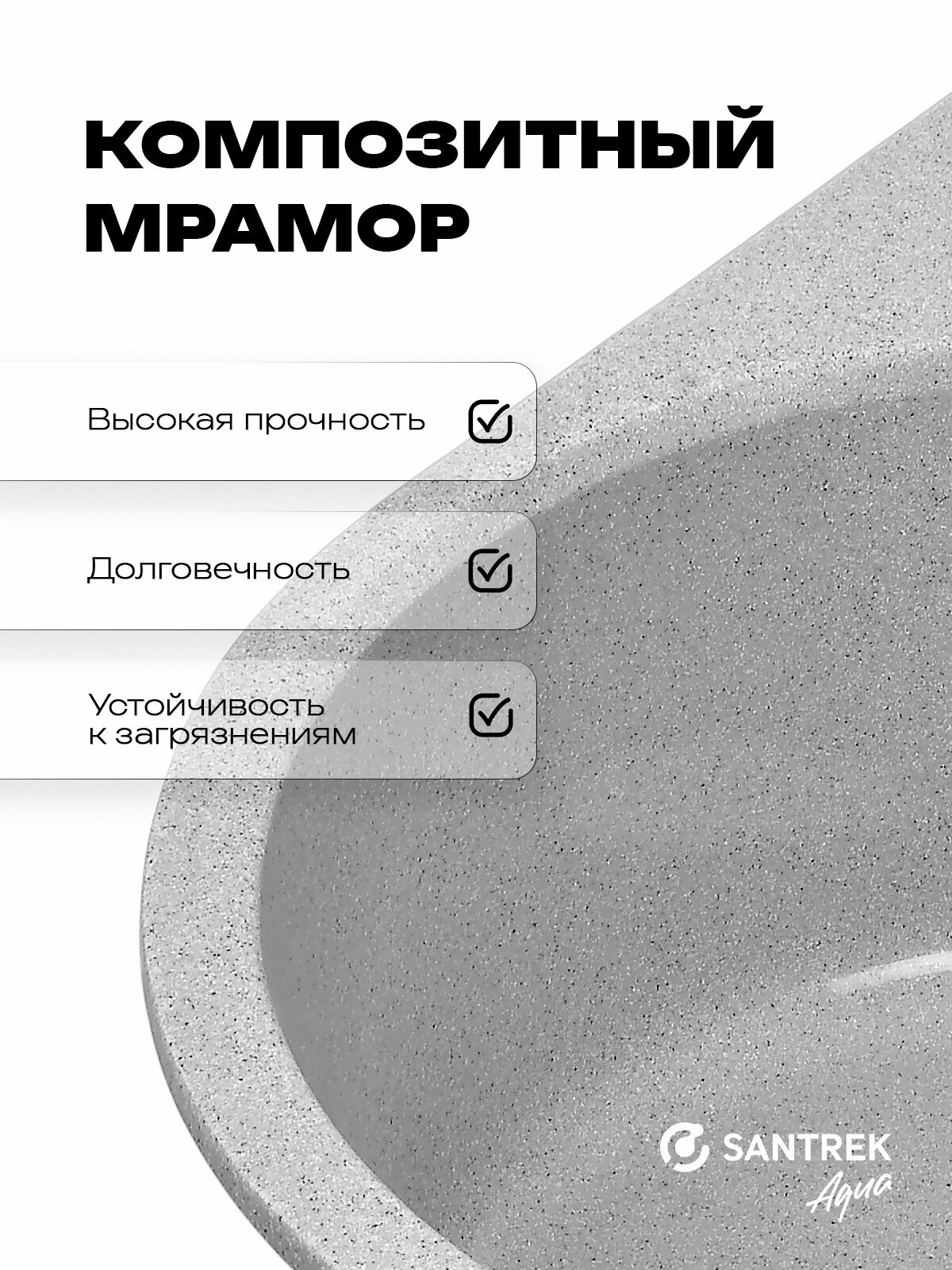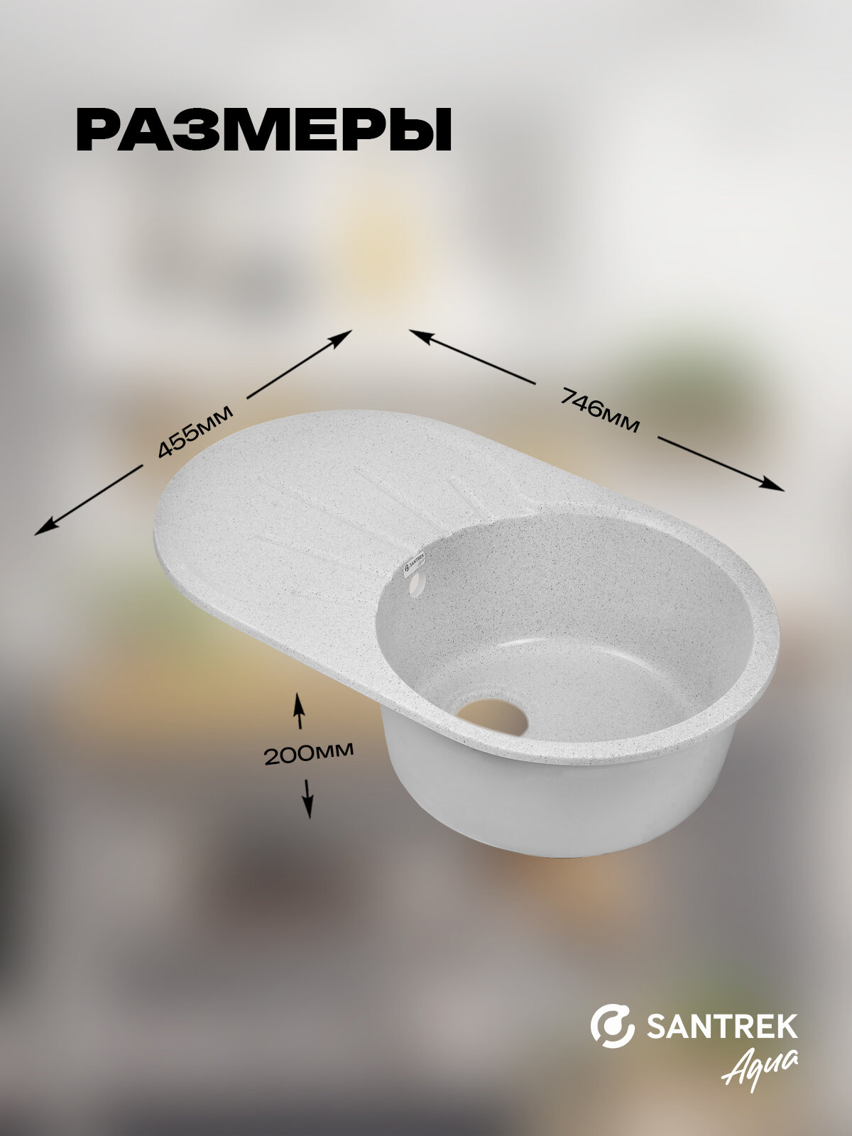 Мойка SANTREK AQUA ROUND SA-R750L чаша + крыло 750*460 мм (серый-310) (без сифона) интересное: