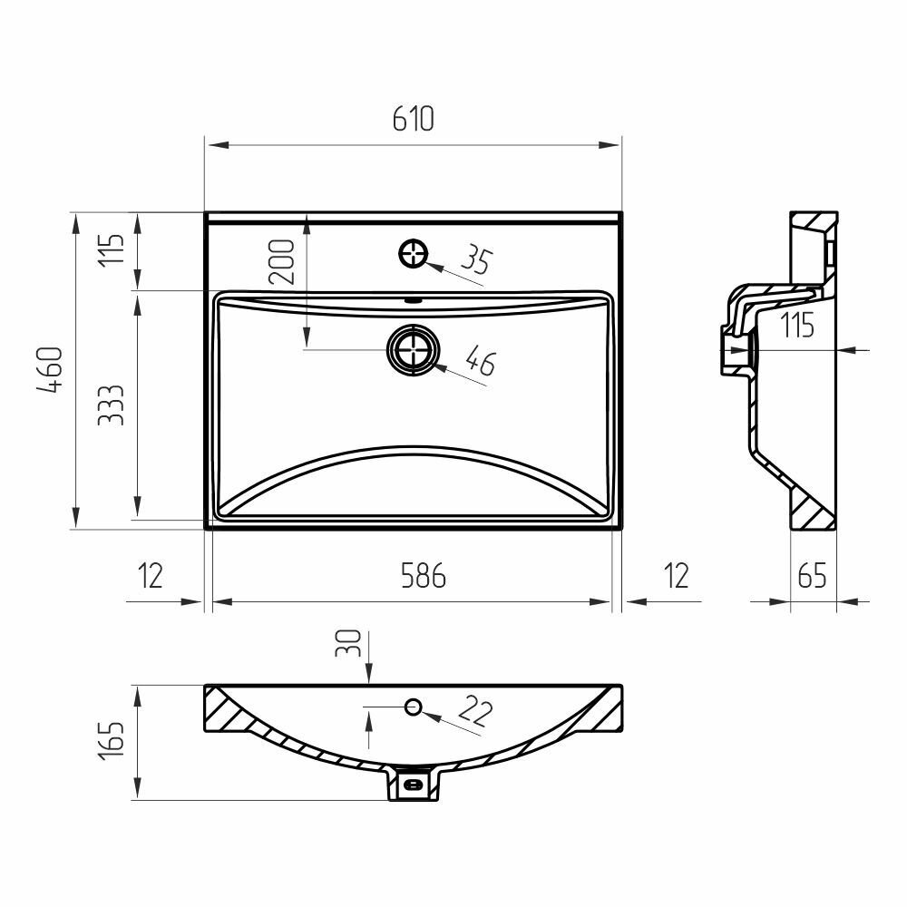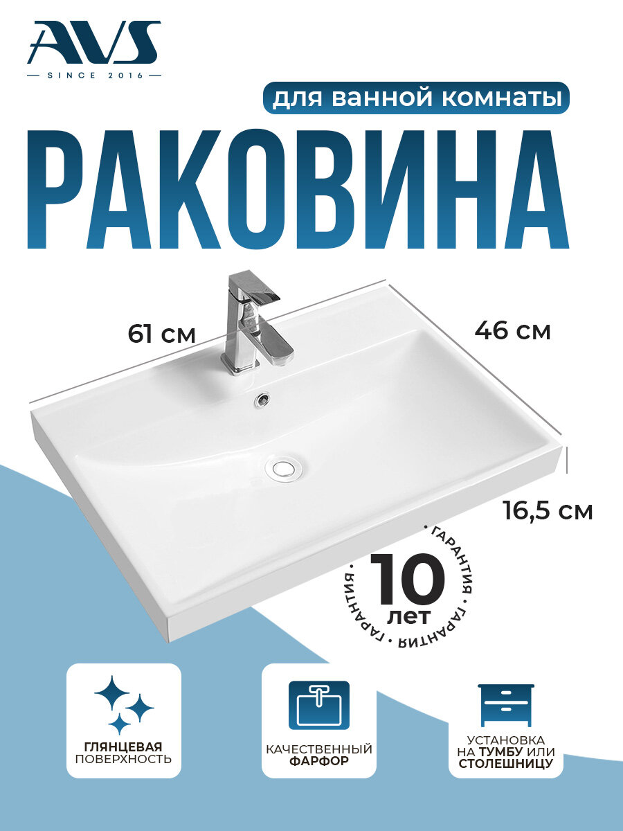 СохранитьРаковина для ванной врезная AVS 61см x 46см, белая глянцевая, накладная на столешницу или тумбу интересное: