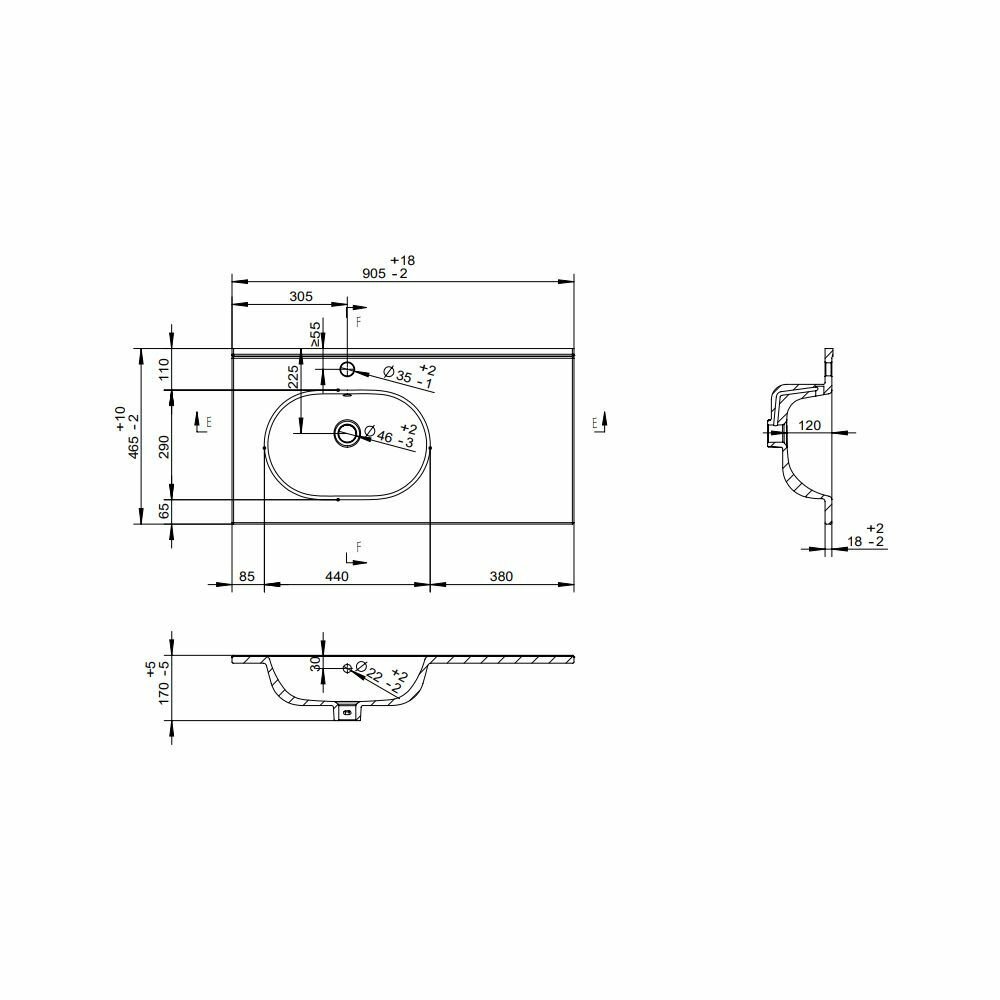 Раковина для ванной врезная AVS 90см x 46,5см, белая глянцевая, накладная на столешницу или тумбу