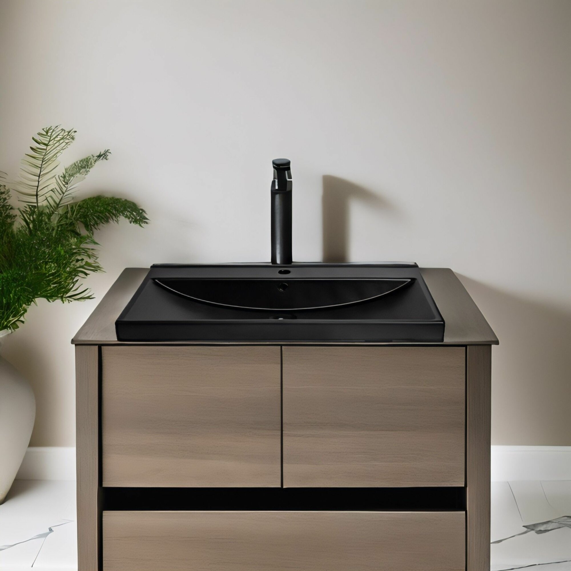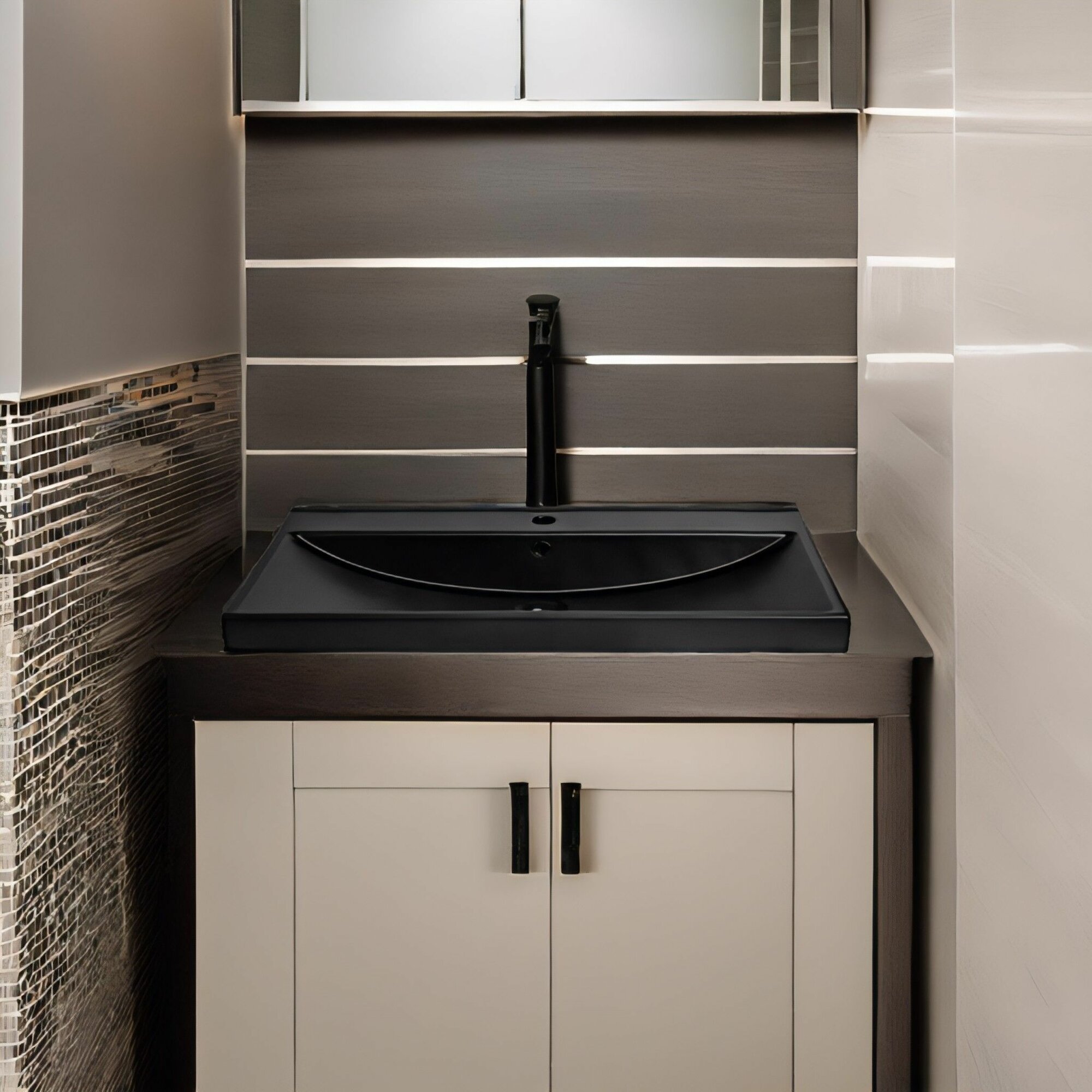 Раковина для ванной врезная AVS 81см x 46см, черная матовая, накладная на столешницу или тумбу