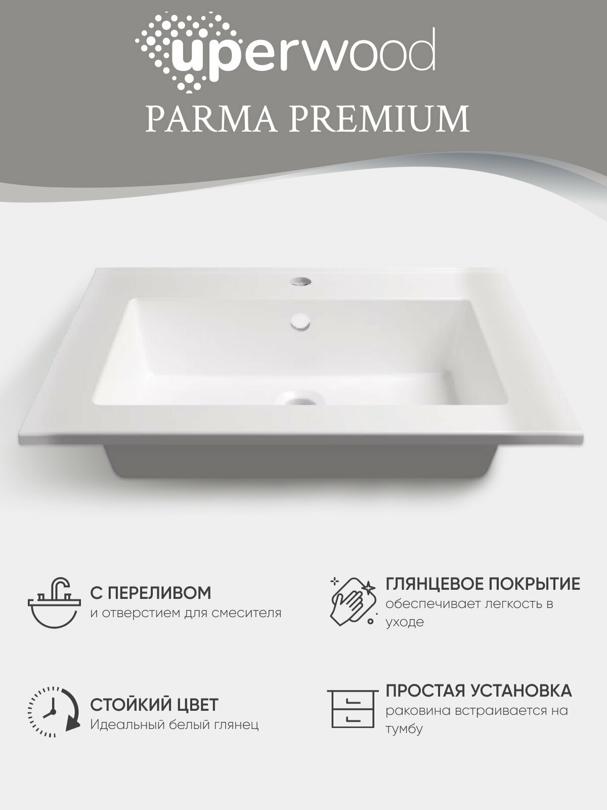 Раковина для ванной 66 см, Uperwood Parma Premium, белая глянцевая интересное: