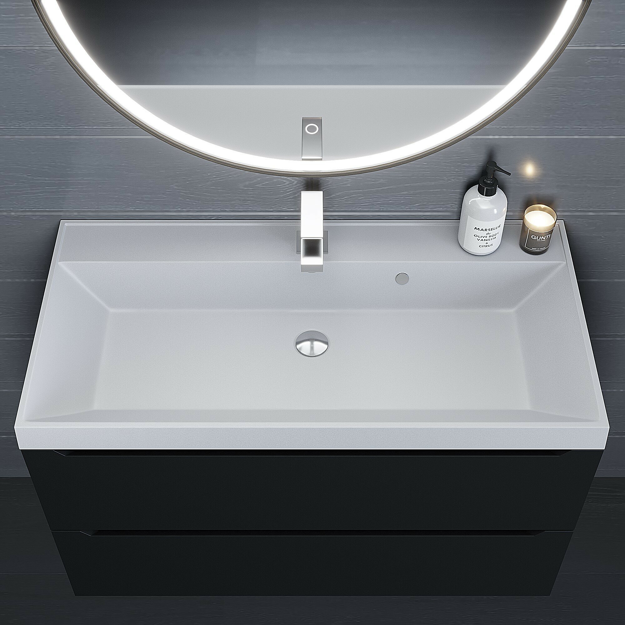 Раковина кварцевая для ванной Uperwood Classic Quartz 90х45х15 см, черная матовая, космос