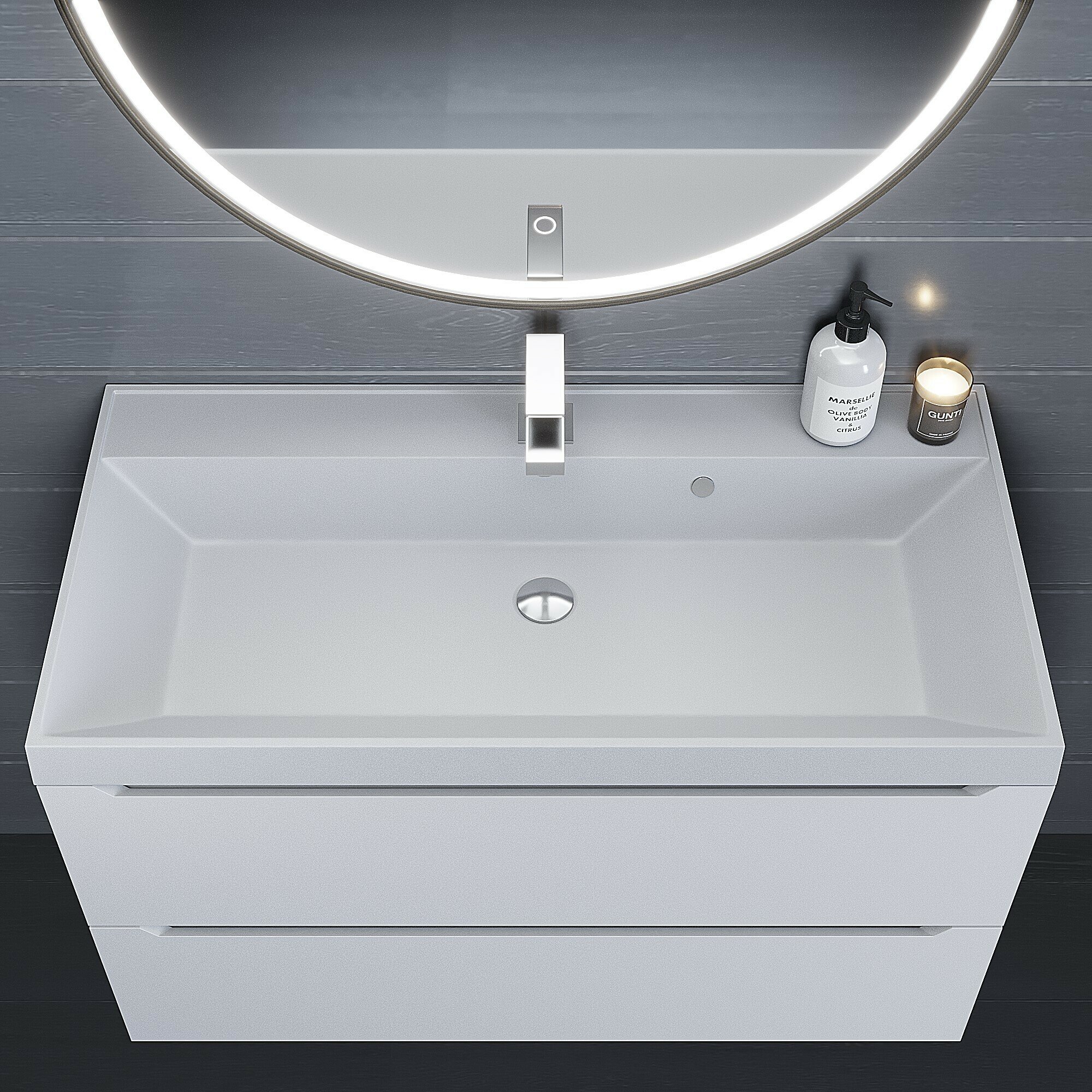 Раковина кварцевая для ванной Uperwood Classic Quartz 100х45х15 см, серая матовая, бетон