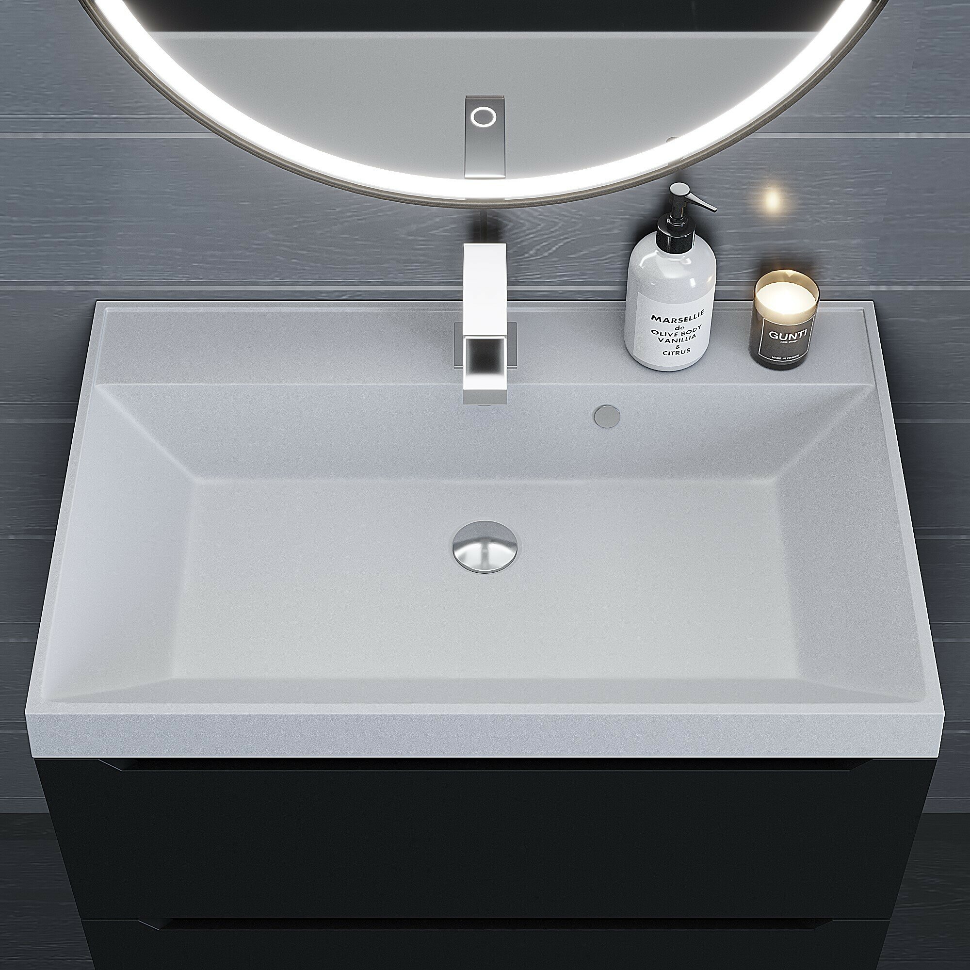 Раковина кварцевая для ванной Uperwood Classic Quartz 80х45х15 см, черная матовая, уголь