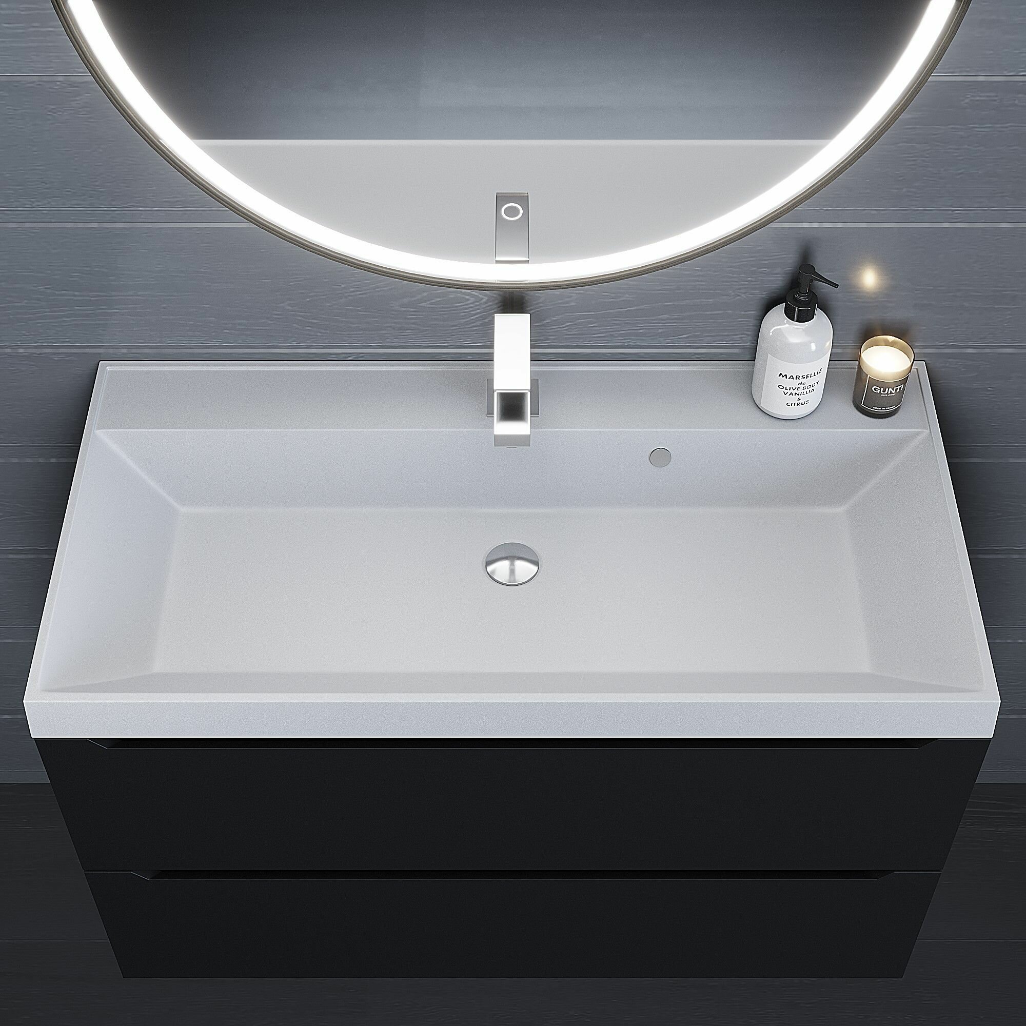 Раковина кварцевая для ванной Uperwood Classic Quartz 100х45х15 см, черная матовая, уголь