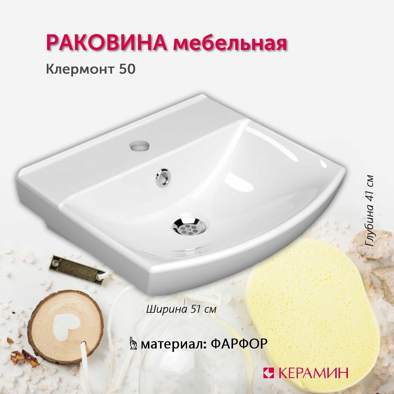 Мебельная раковина Керамин Клермонт 50 белый с хромированным кольцом для перелива в комплекте интересное: