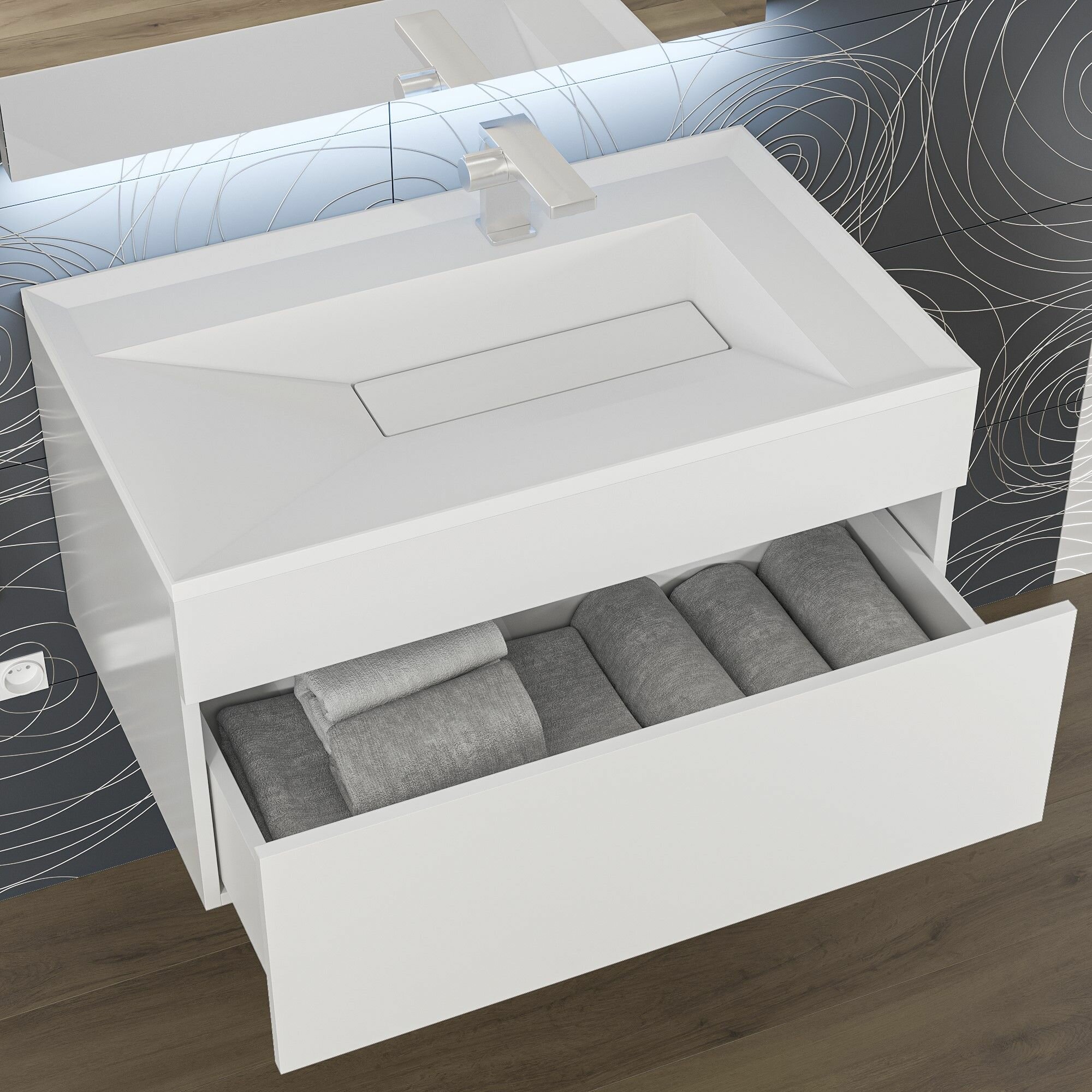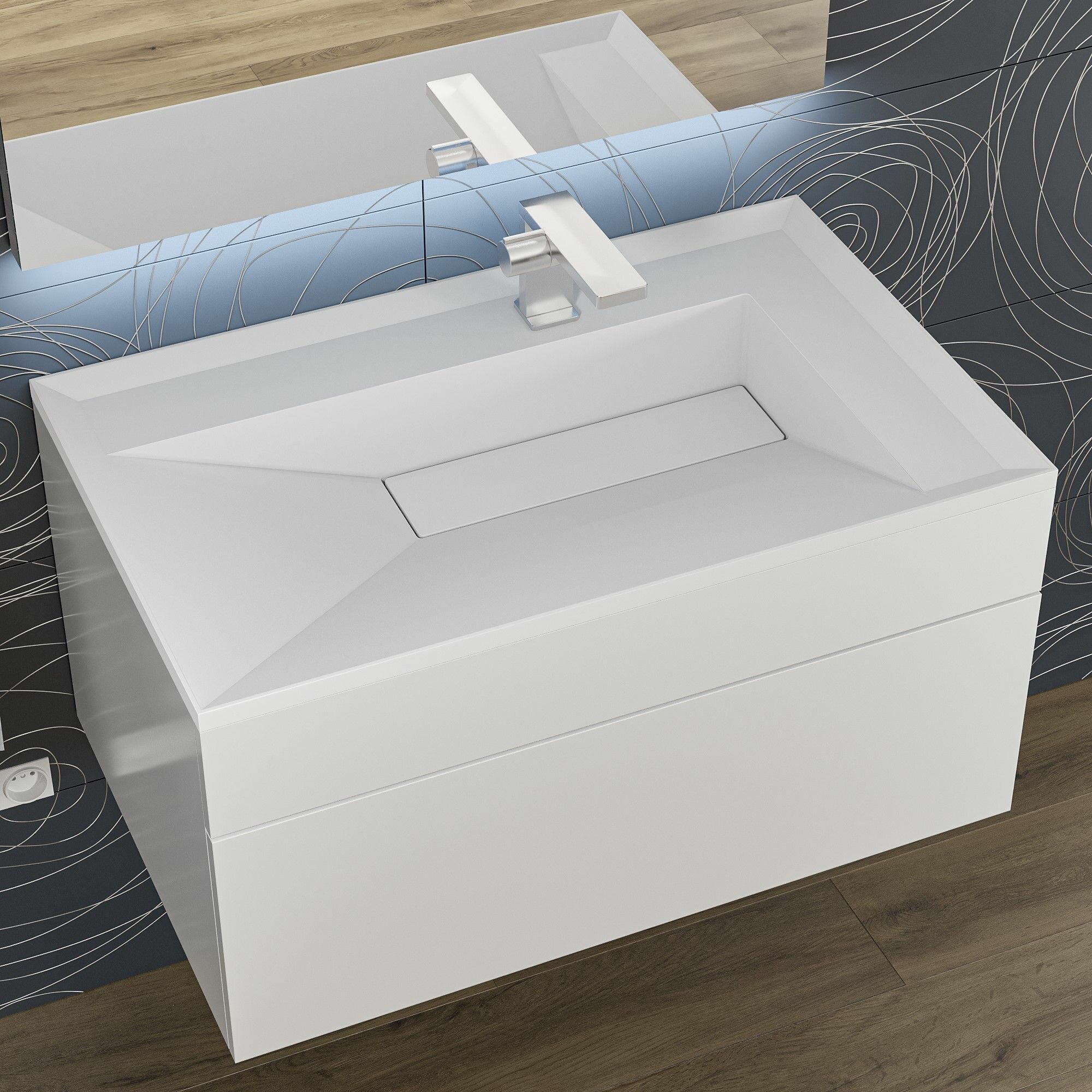 Раковина для ванной полувстраиваемая Uperwood Lotus 80 см, прямоугольная, белая матовая интересное: