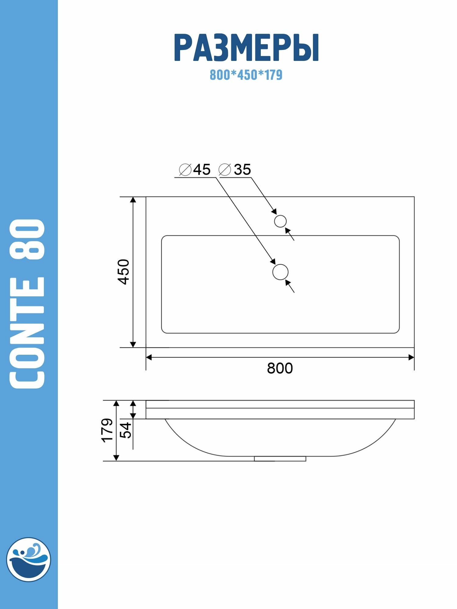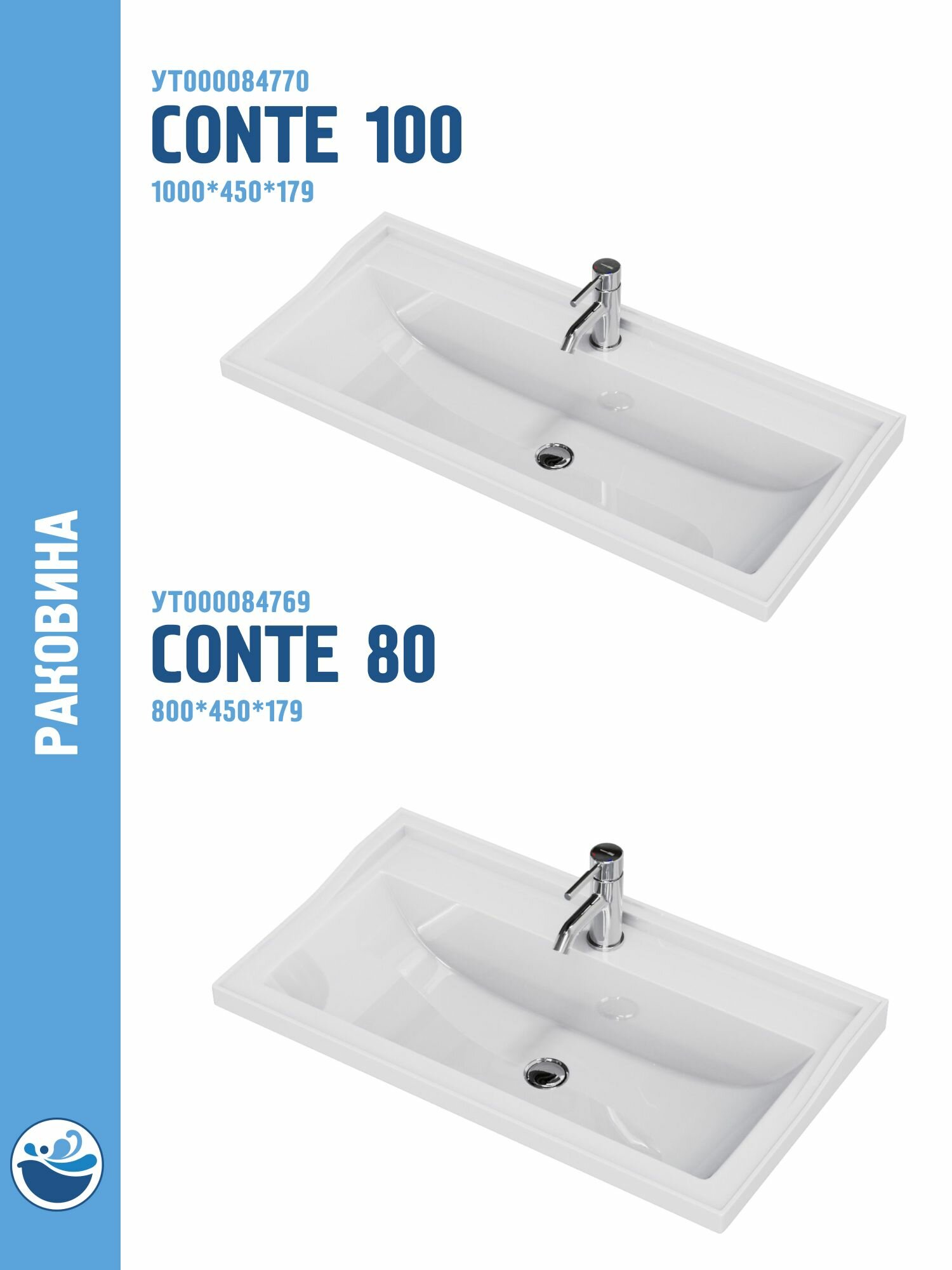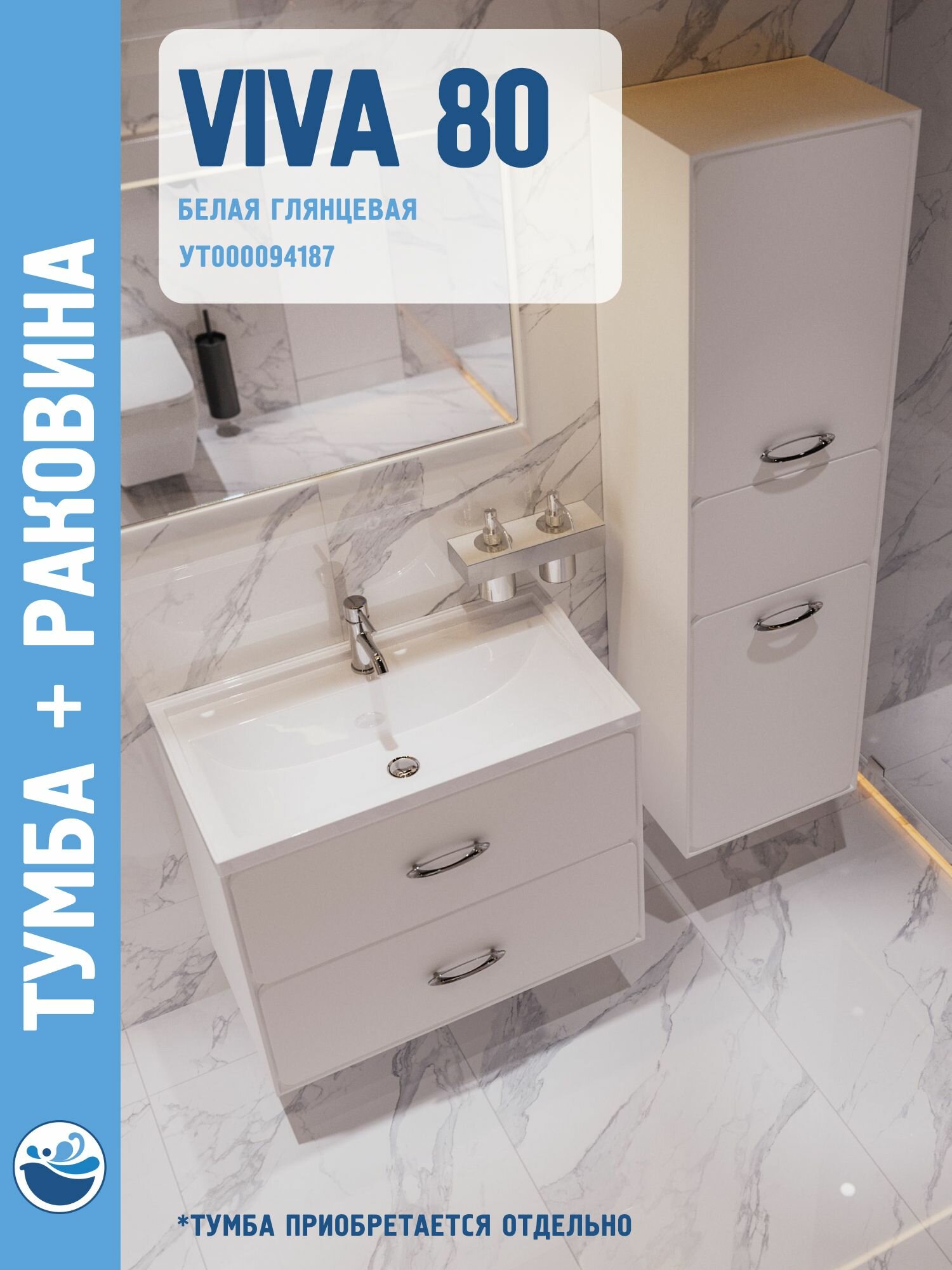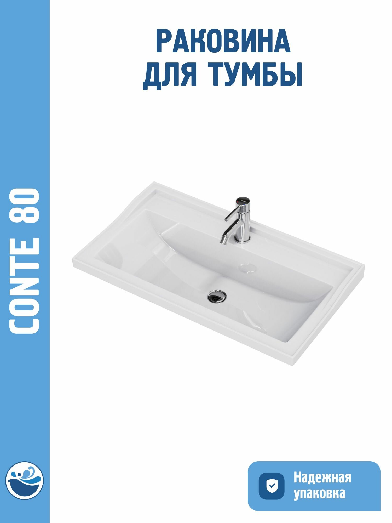 Раковина для ванной комнаты Conte 80 из литьевого мрамора, белая под тумбу Viva 80 (без тумбы) интересное: