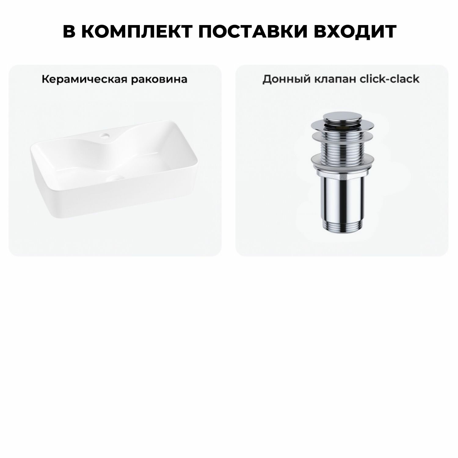 Накладная раковина для ванной комнаты Lavinia Boho Bathroom Sink 20215279R в наборе 4 в 1: раковина 54 см в цвете белый глянец, донный клапан, сифон, смеситель (цвет набора хром)