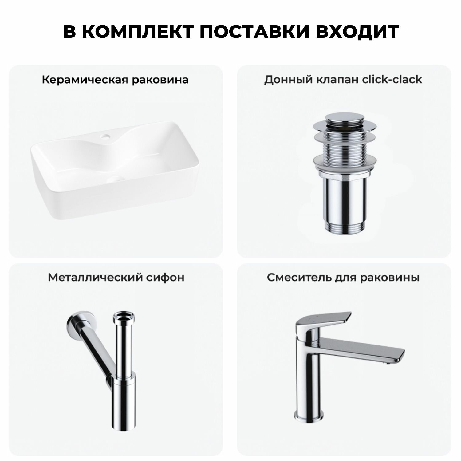 Накладная раковина для ванной комнаты Lavinia Boho Bathroom Sink 20215263R в наборе 4 в 1: раковина 48 см в цвете белый глянец, донный клапан, сифон, смеситель (цвет набора хром)
