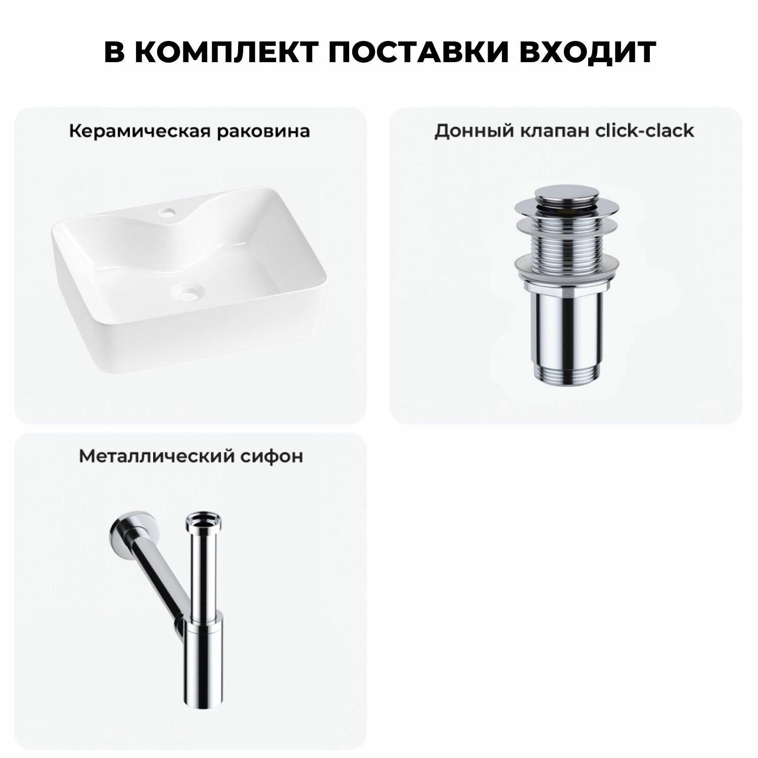 Накладная раковина для ванной комнаты Lavinia Boho Bathroom Sink 20215279R в наборе 4 в 1: раковина 54 см в цвете белый глянец, донный клапан, сифон, смеситель (цвет набора хром)