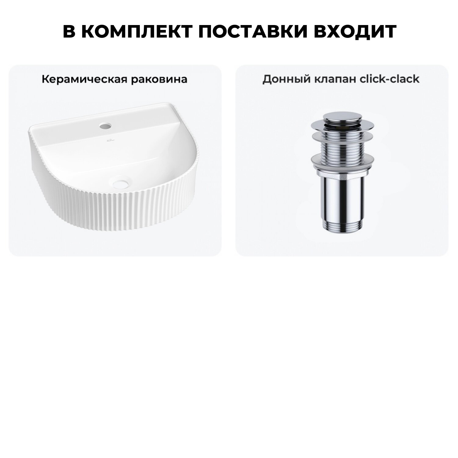 Подвесная или накладная раковина в ванную комнату Wellsee Festive Fox 20213442R в наборе 4 в 1: раковина 45 см в цвете белый глянец, донный клапан, сифон, смеситель (цвет набора хром)