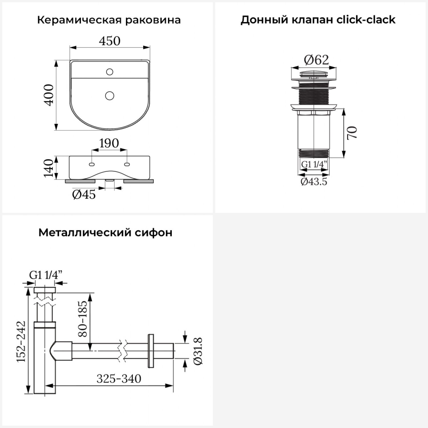 СохранитьПодвесная или накладная раковина в ванную комнату Wellsee Festive Fox 20213438R в наборе 3 в 1: раковина 45 см в цвете белый глянец, донный клапан, сифон (цвет набора хром) интересное: