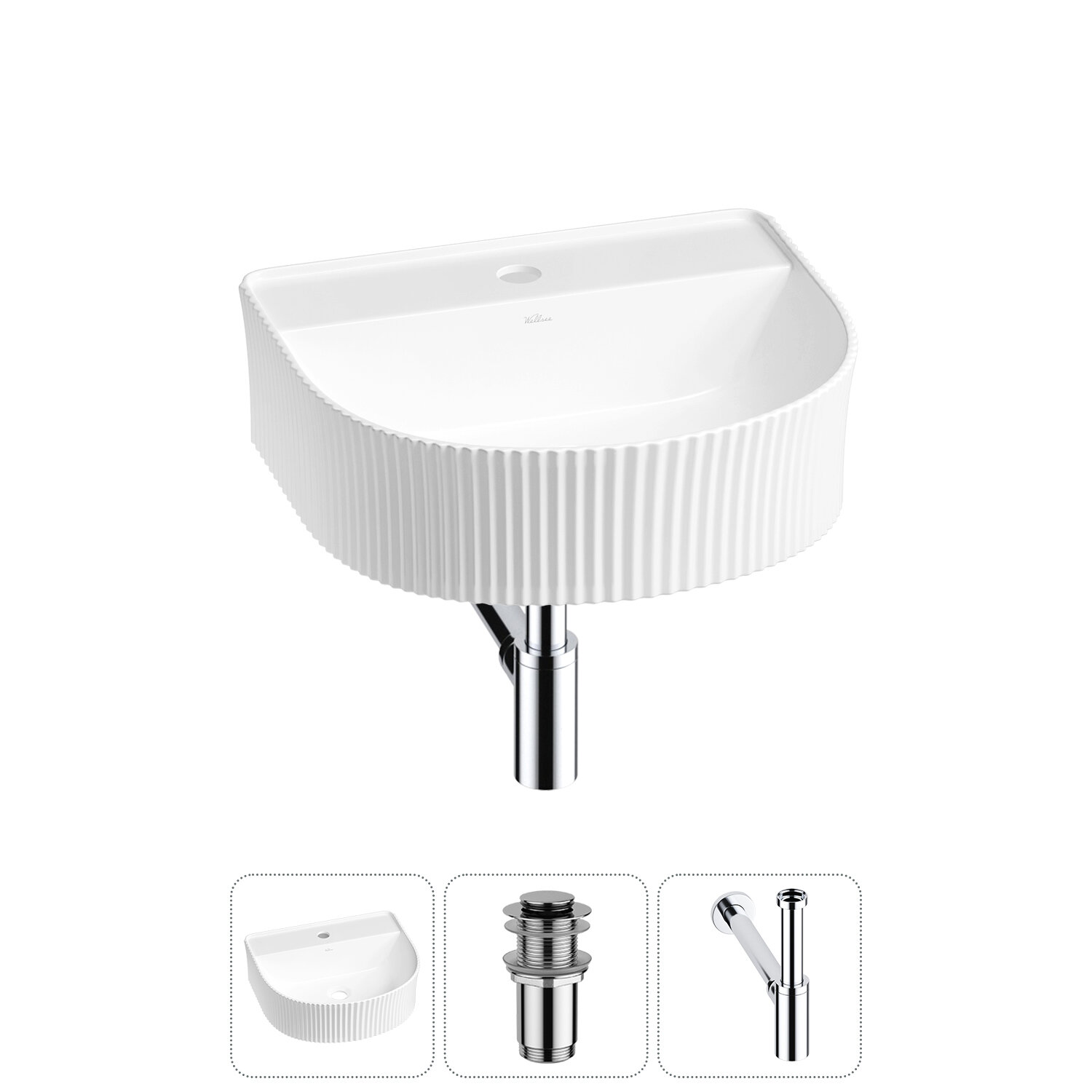 Купить Подвесная или накладная раковина в ванную комнату Wellsee Festive Fox 20213438R в наборе 3 в 1: раковина 45 см в цвете белый глянец, донный клапан, сифон (цвет набора хром)