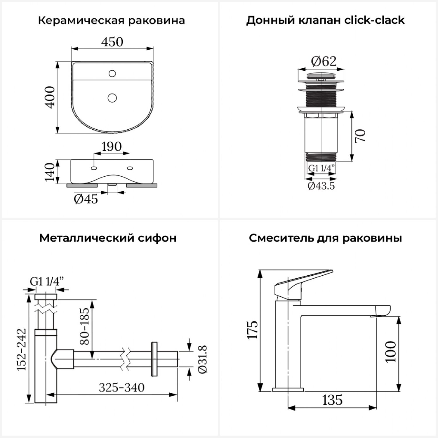 СохранитьПодвесная или накладная раковина в ванную комнату Wellsee Festive Fox 20213442R в наборе 4 в 1: раковина 45 см в цвете белый глянец, донный клапан, сифон, смеситель (цвет набора хром) интересное: