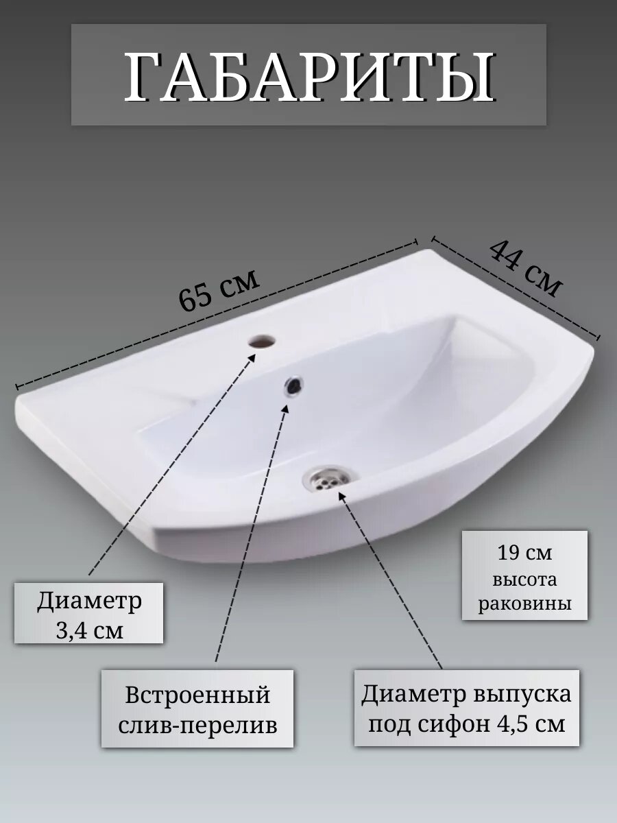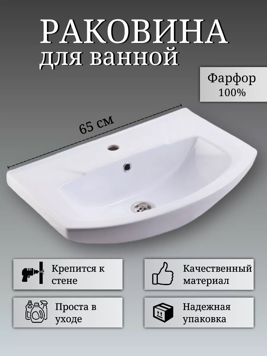 Раковина в ванную комнату, накладная на тумбу, 65 см, фарфор интересное: