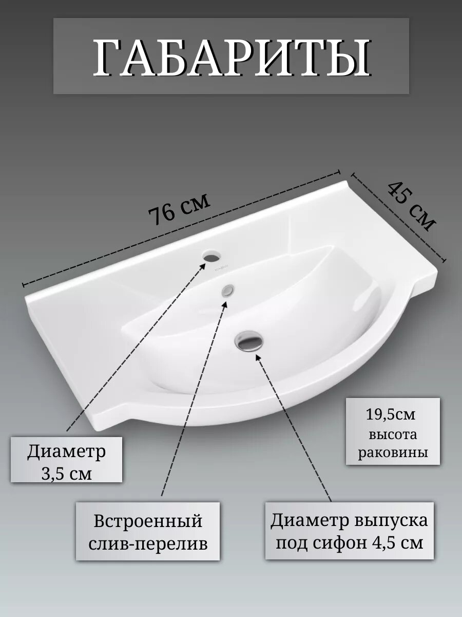 Раковина в ванную комнату, накладная на тумбу, 76 см, фарфор интересное: