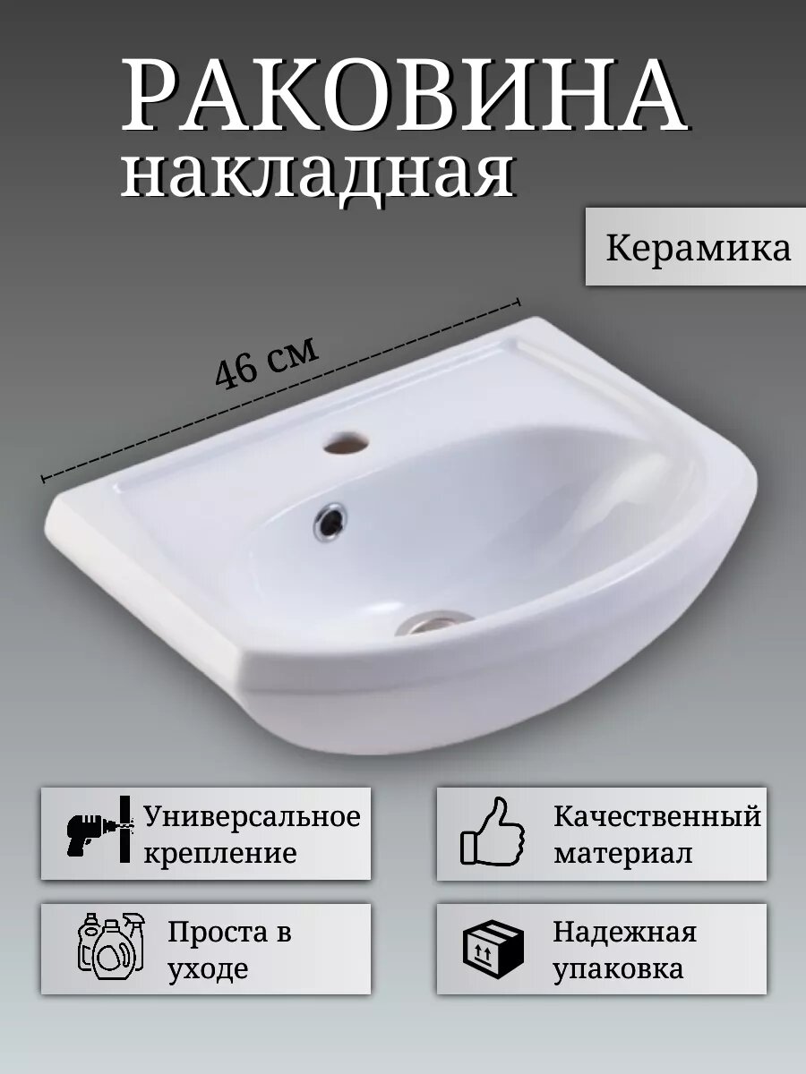 Раковина накладная в ванную комнату, на тумбу, 46 см, фарфор интересное: