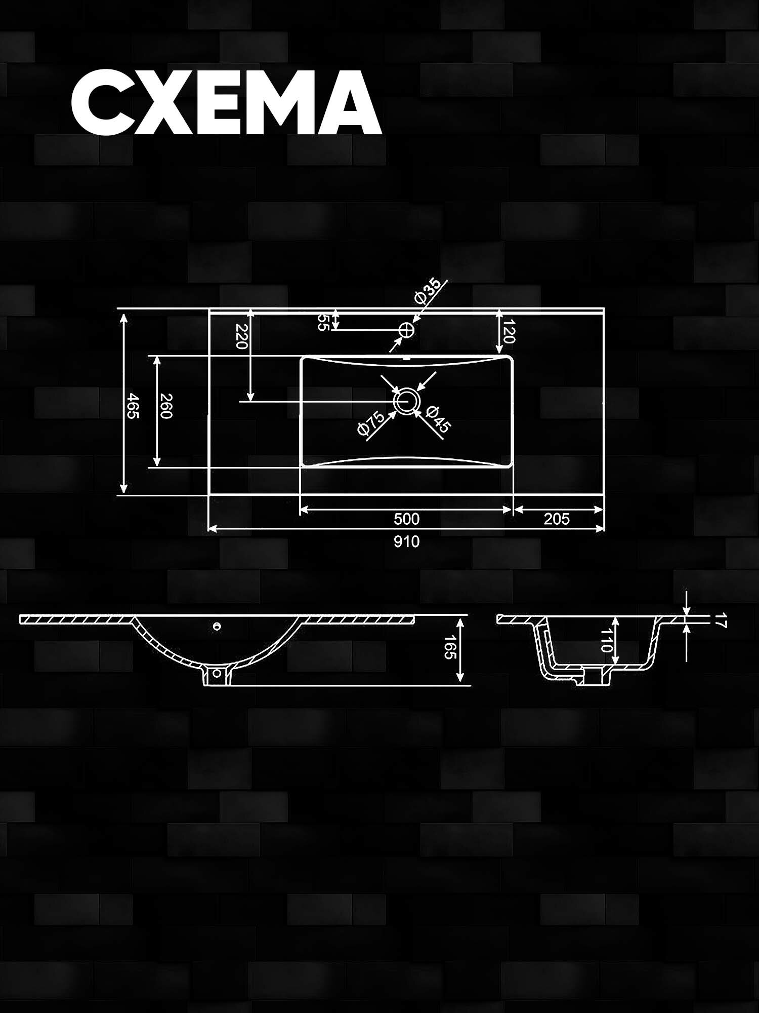 Раковина врезная E90 (910*465*165мм), белая интересное:
