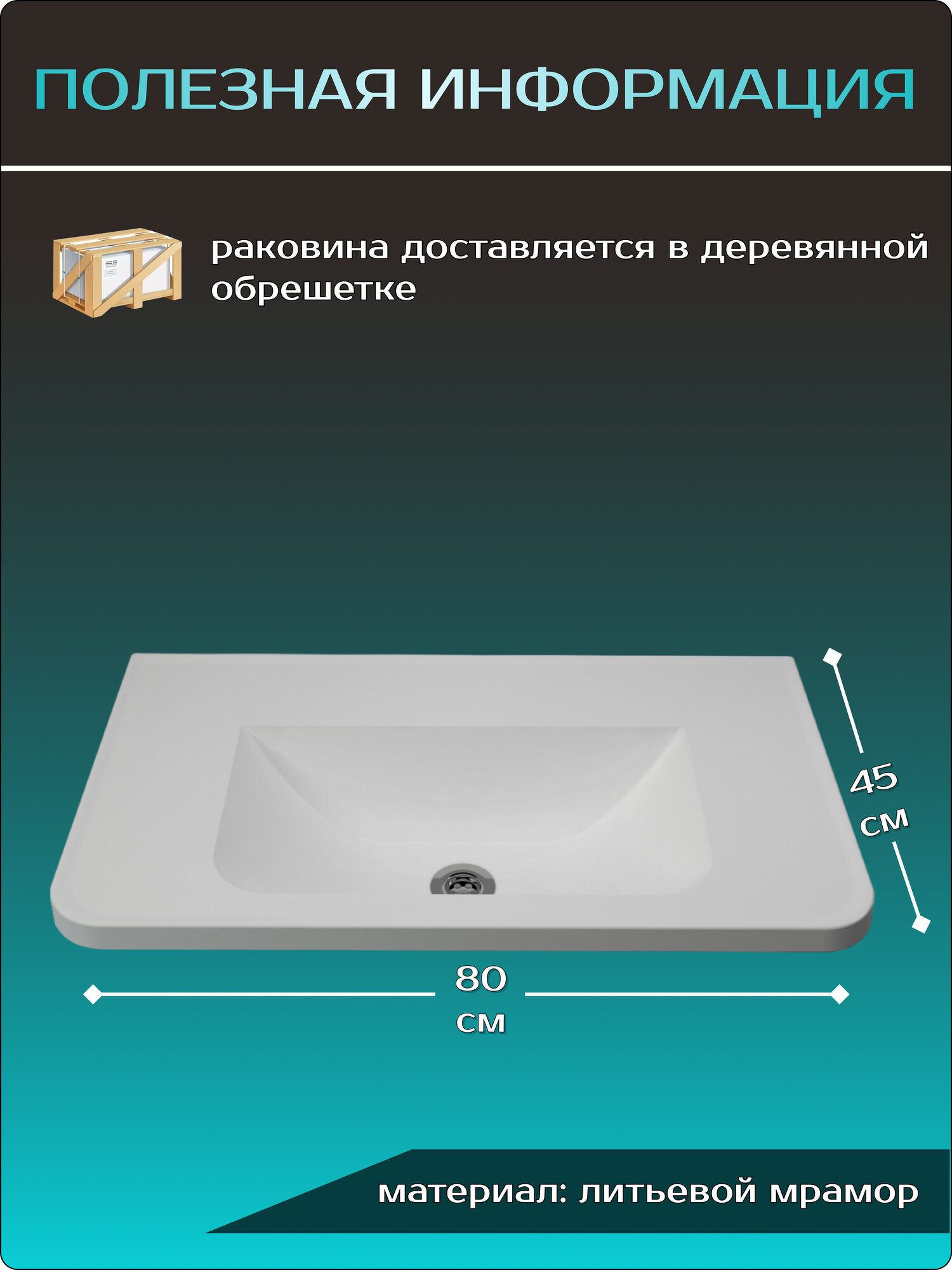 Накладная раковина в ванную комнату "Рикко 80", белая, 80х45 интересное: