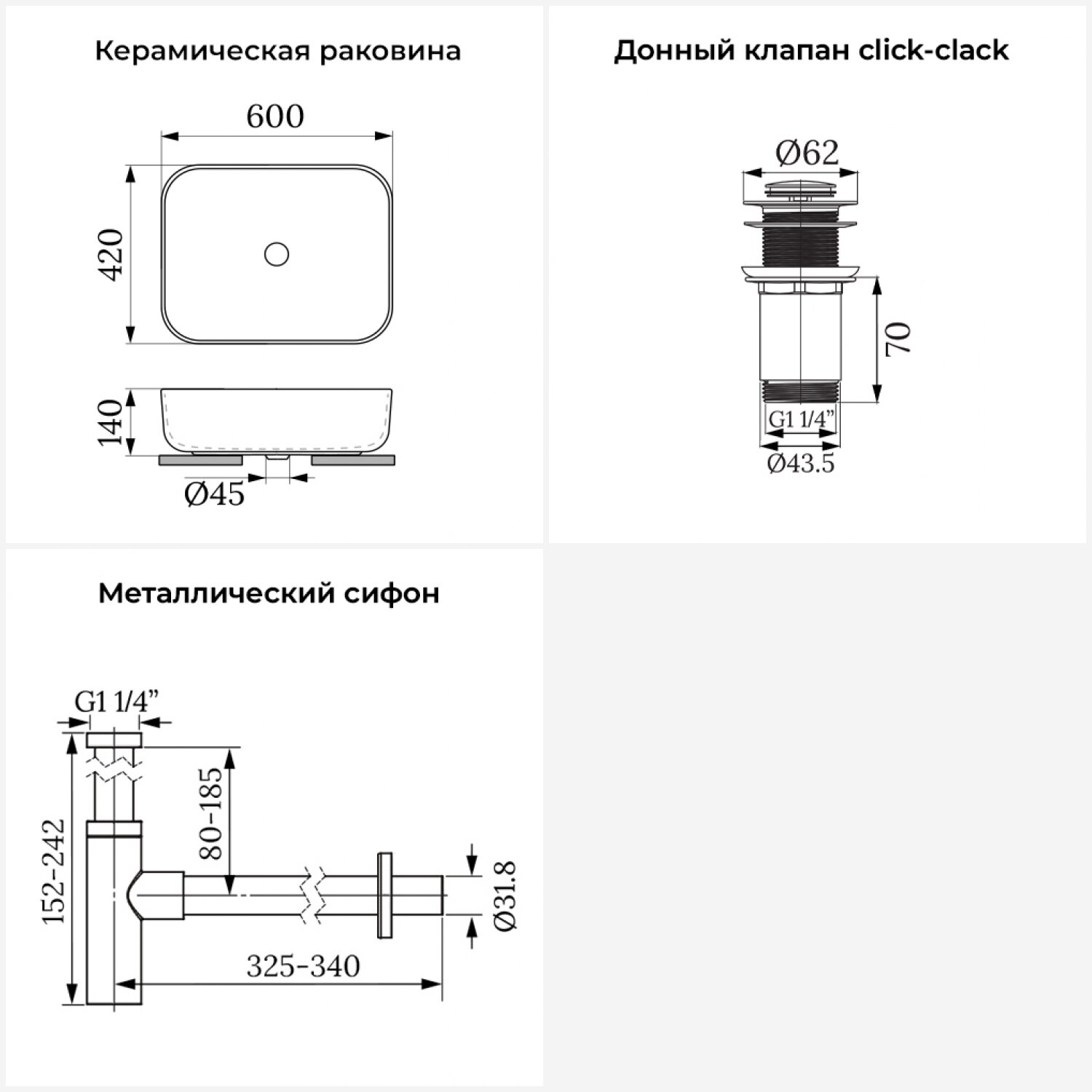 СохранитьНакладная раковина в ванную комнату Wellsee Preen 20214253R в наборе 3 в 1: раковина 60 см в цвете белый глянец, донный клапан, сифон (цвет набора золото) интересное: