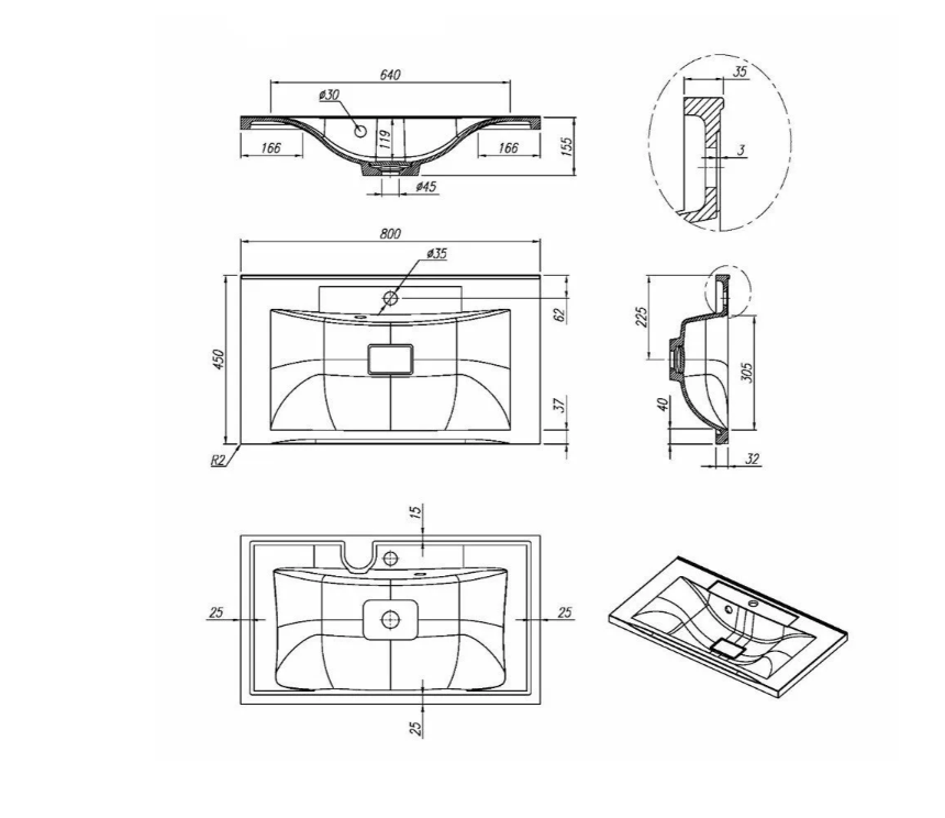 Раковина для ванной кварцевая Uperwood Elen Quartz 80х45х15,8 см, серая матовая, серый шелк интересное: