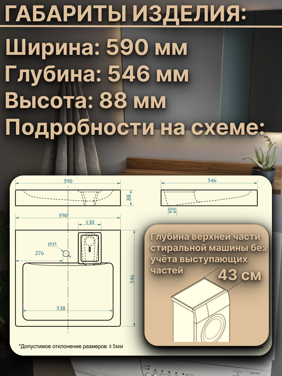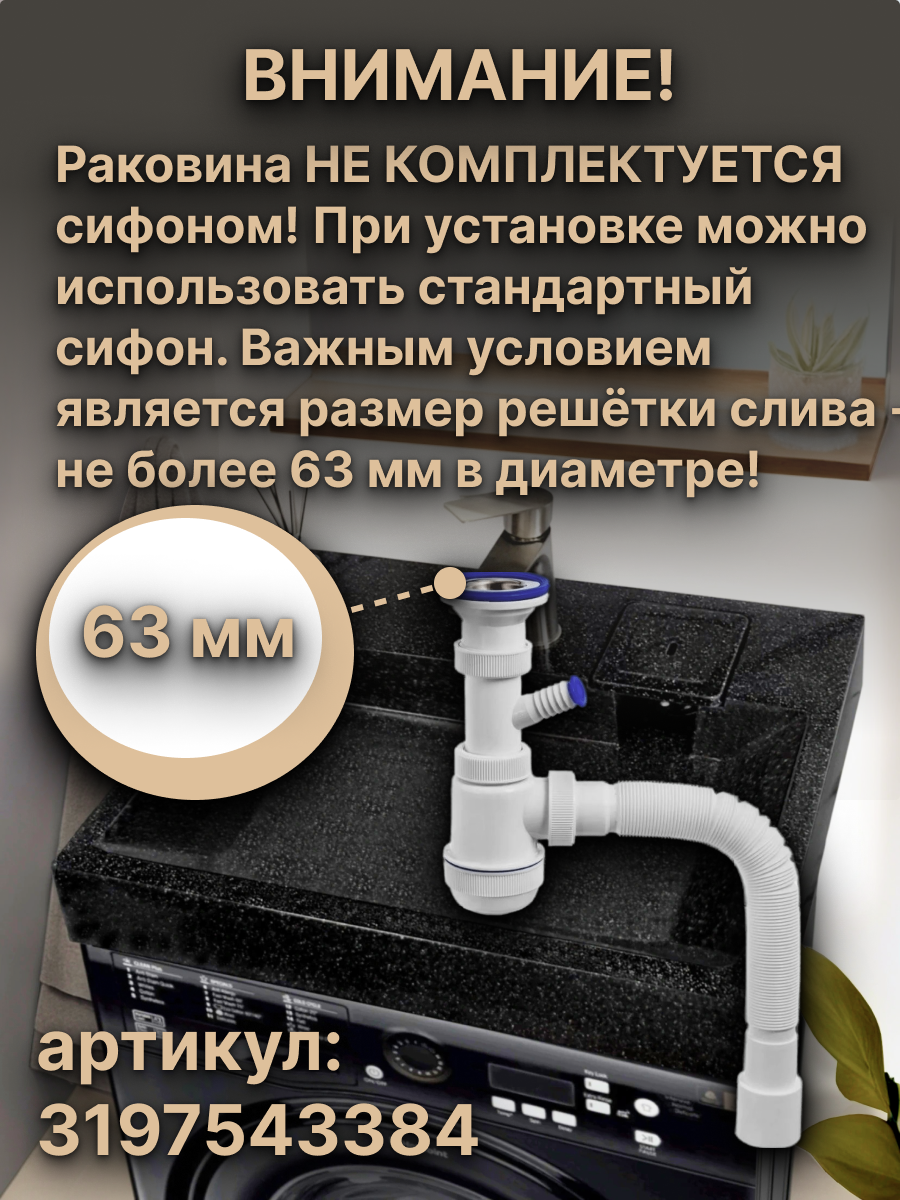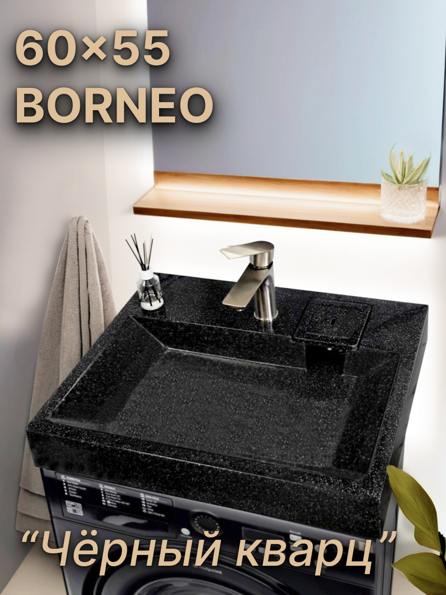 СохранитьРаковина над стиральной машиной BORNEO 60х55, цвет Чёрный кварц, литьевой мрамор интересное: