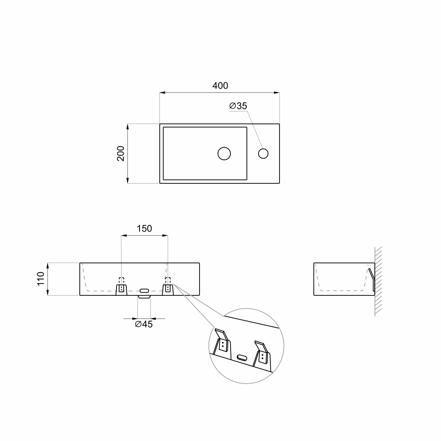 Накладная-подвесная раковина для ванной Lavinia Boho Bathroom Sink 33311025: прямоугольная, ширина умывальника 40 см, цвет глянцевый белый