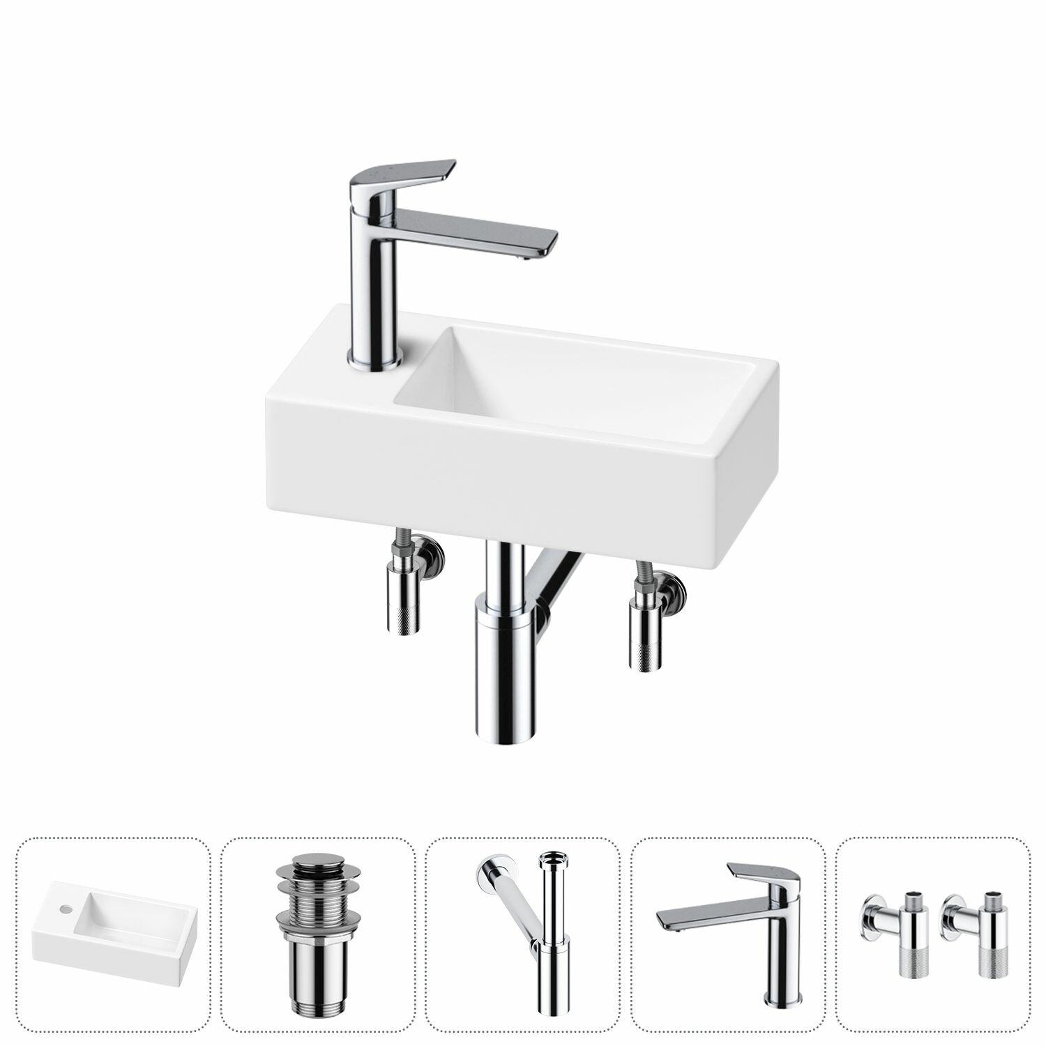 Купить Подвесная или накладная раковина для ванной Lavinia Boho Bathroom Sink 20216005R в наборе 5 в 1: раковина 40 см (белый глянец), донный клапан, сифон, смеситель, вентили (цвет набора хром)